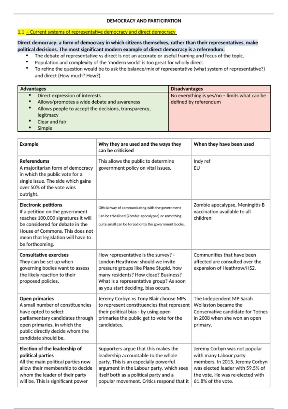PAPER 1 A LEVEL POLITICS - ALL NOTES INCLUDED