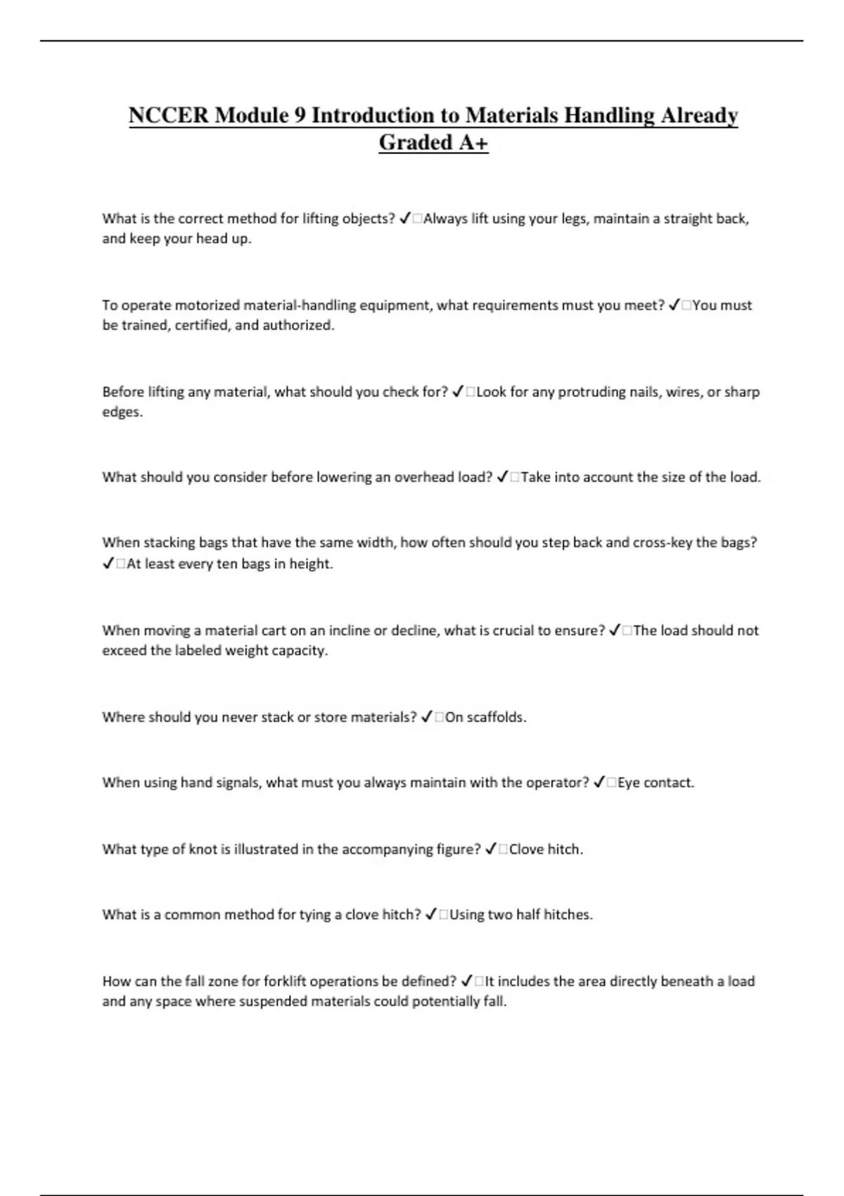What is the correct method for lifting objects? ✔️Always lift using your legs, maintain a straight back,