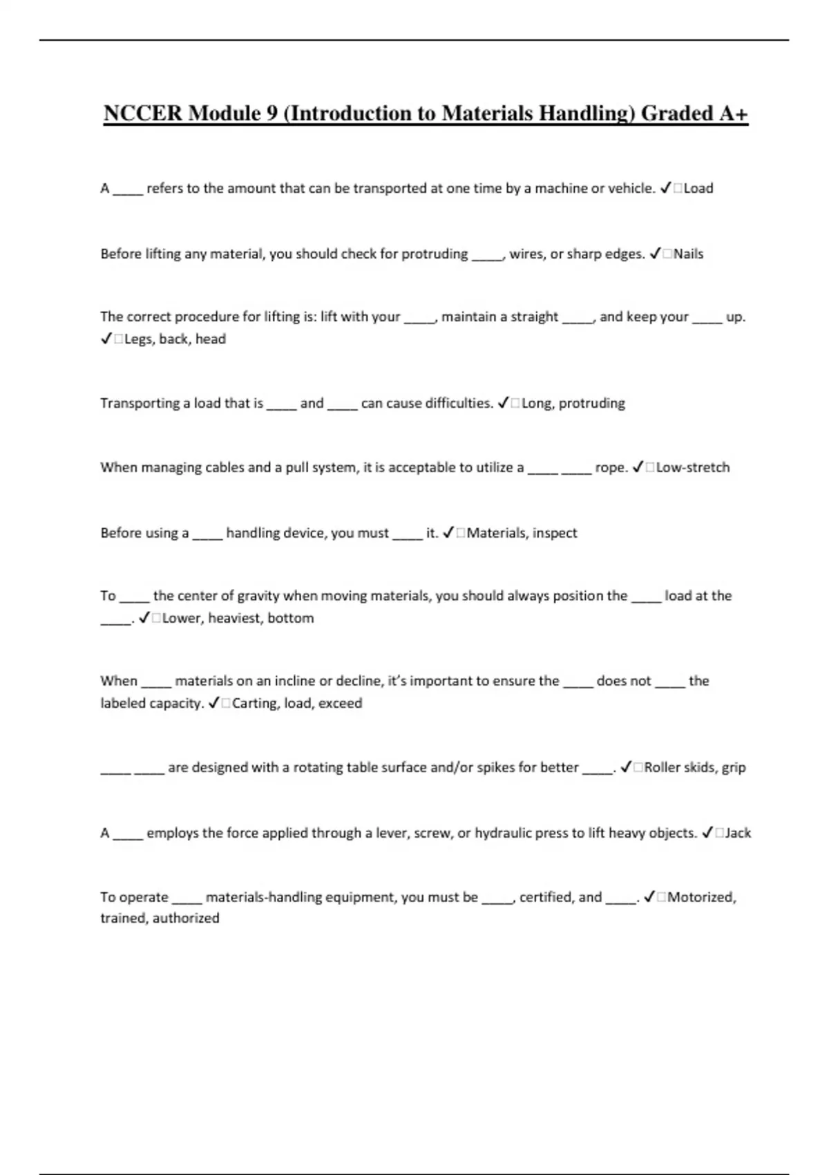 Before using a ____ handling device, you must ____ it. ✔️Materials, inspect
