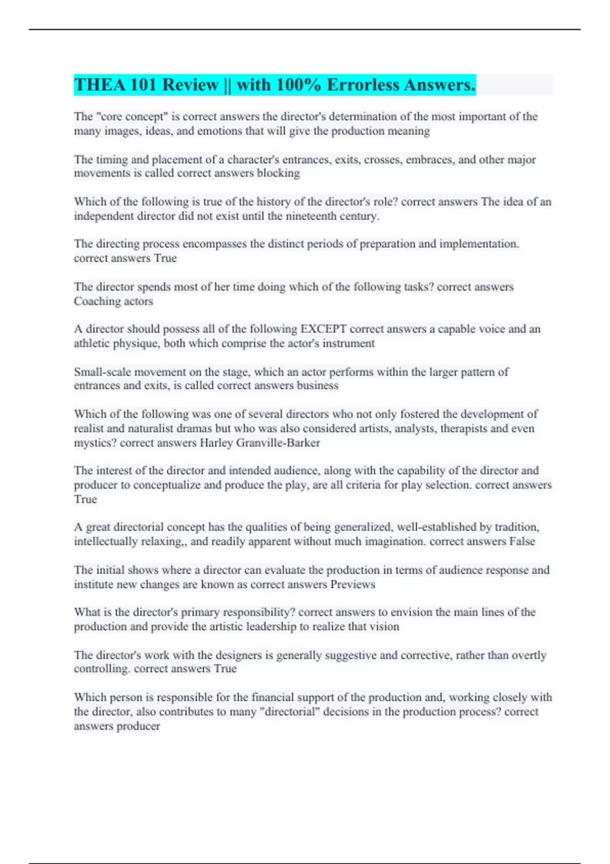 correct answers True