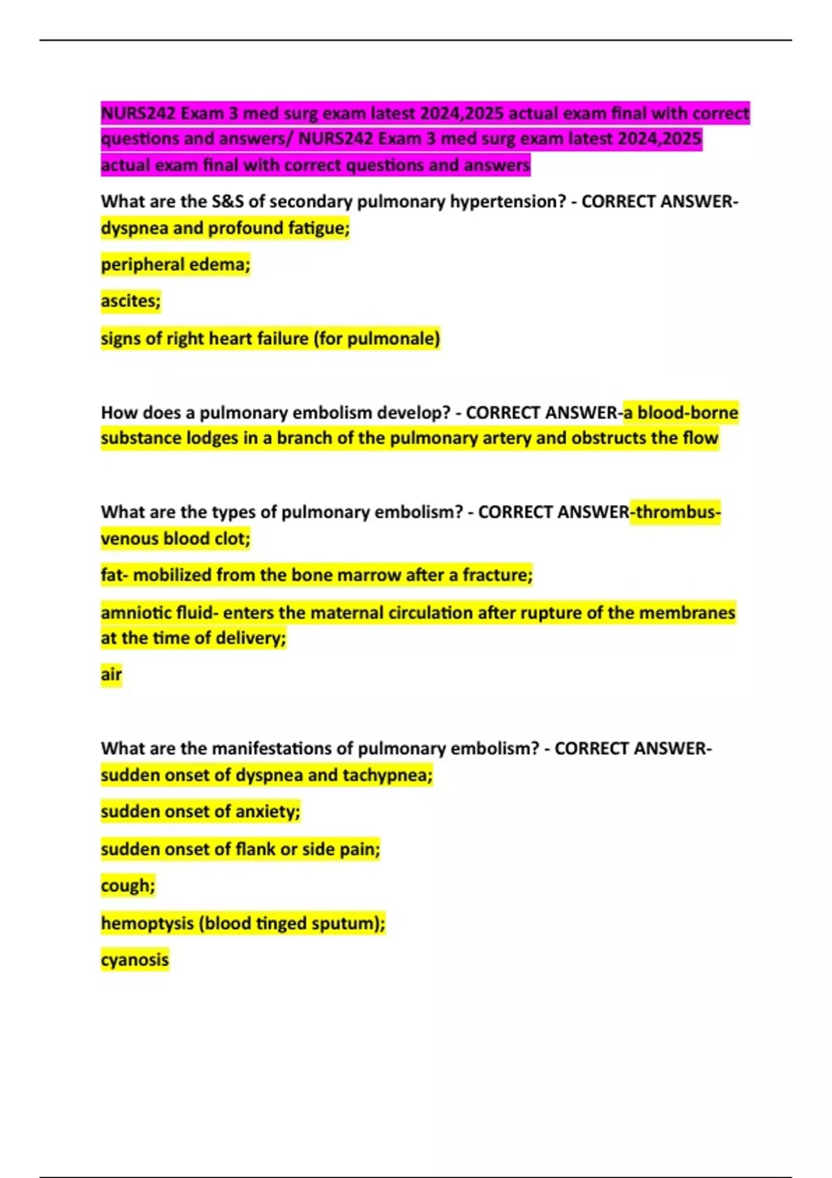 questions and answers/ NURS242 Exam 3 med surg exam latest 2024,2025