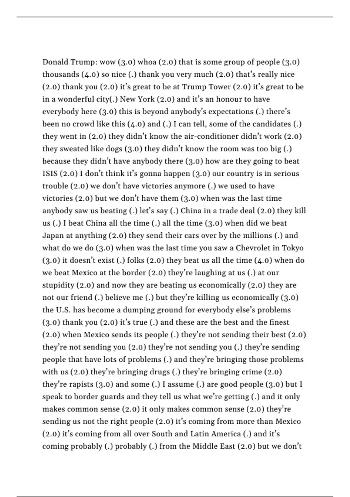 (2.0) when Mexico sends its people (.) they’re not sending their best (2.0)