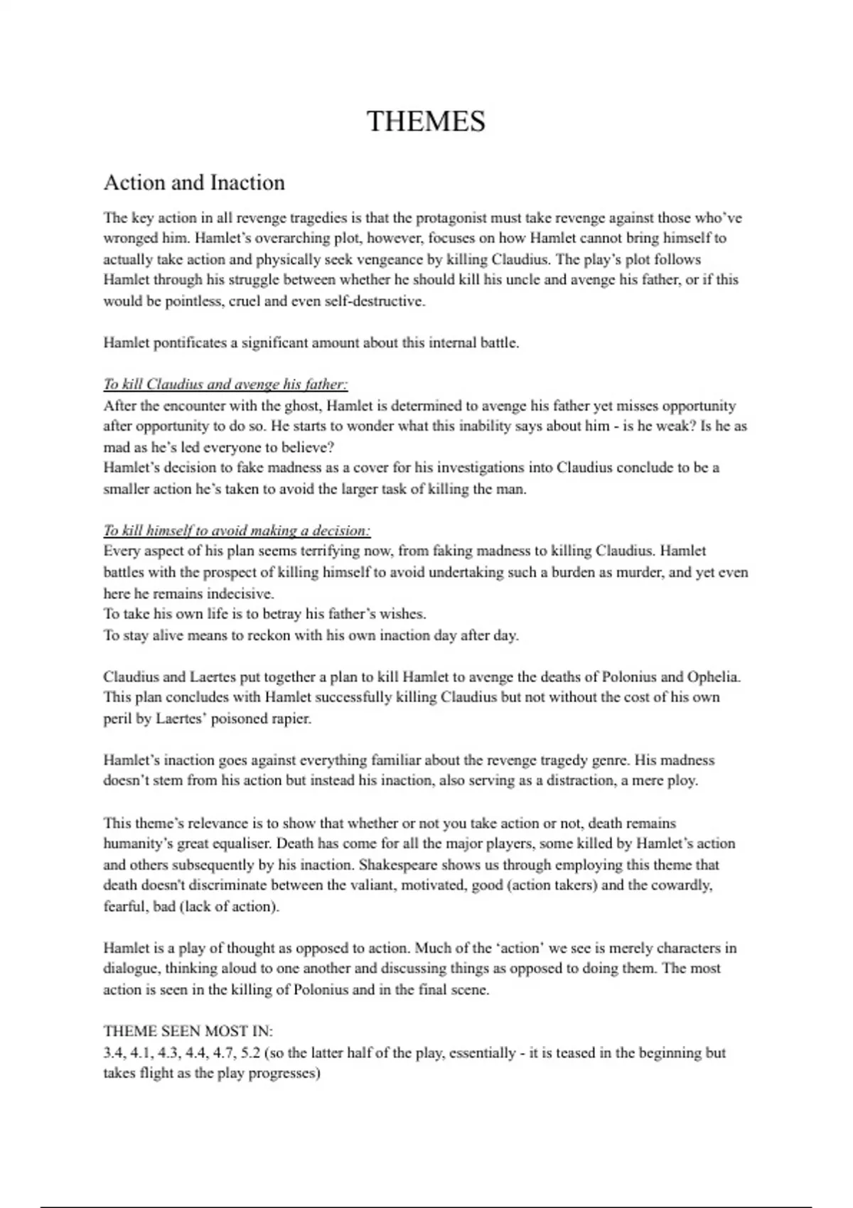 actually take action and physically seek vengeance by killing Claudius. The play’s plot follows