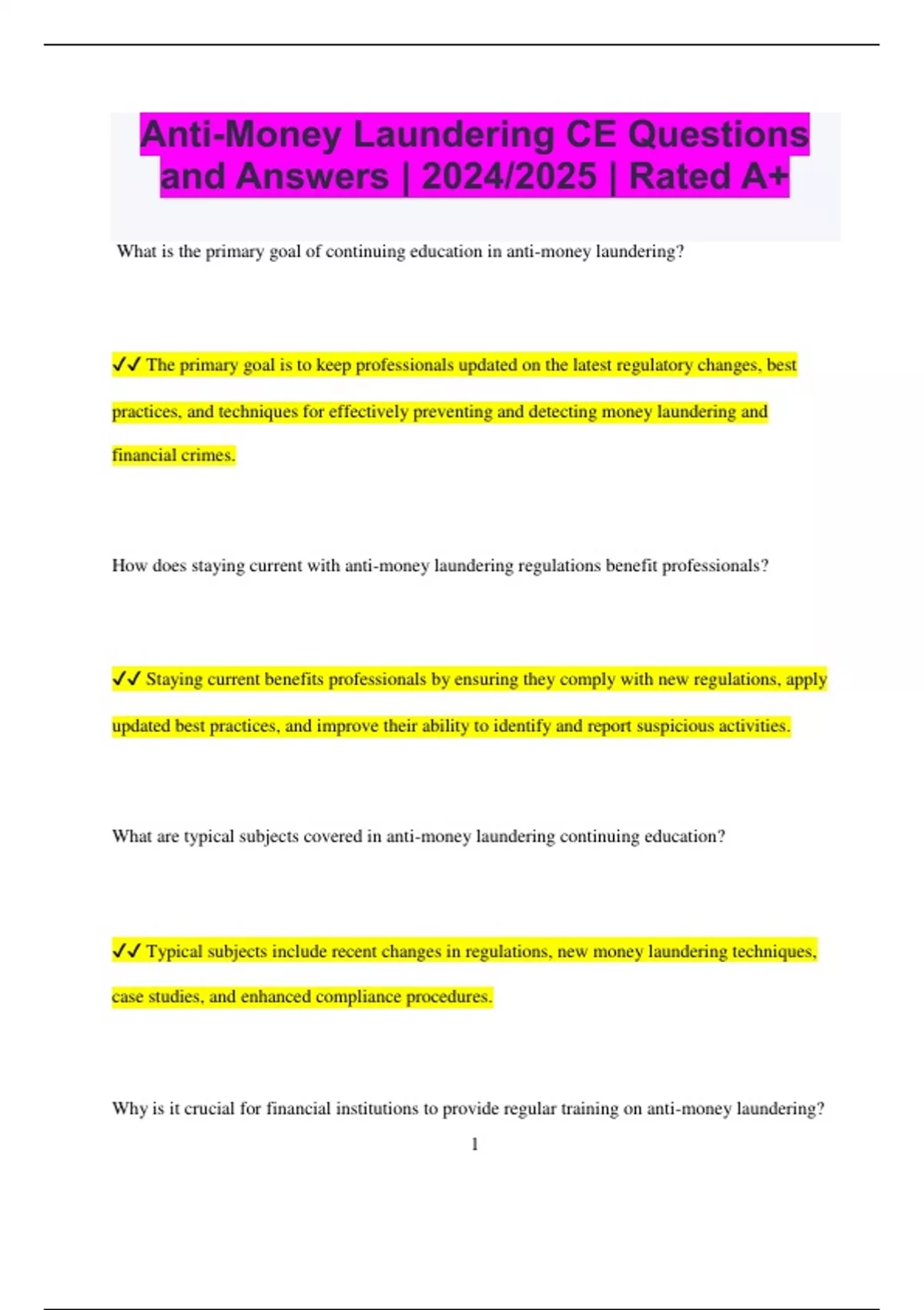 ✔✔ Typical subjects include recent changes in regulations, new money laundering techniques,