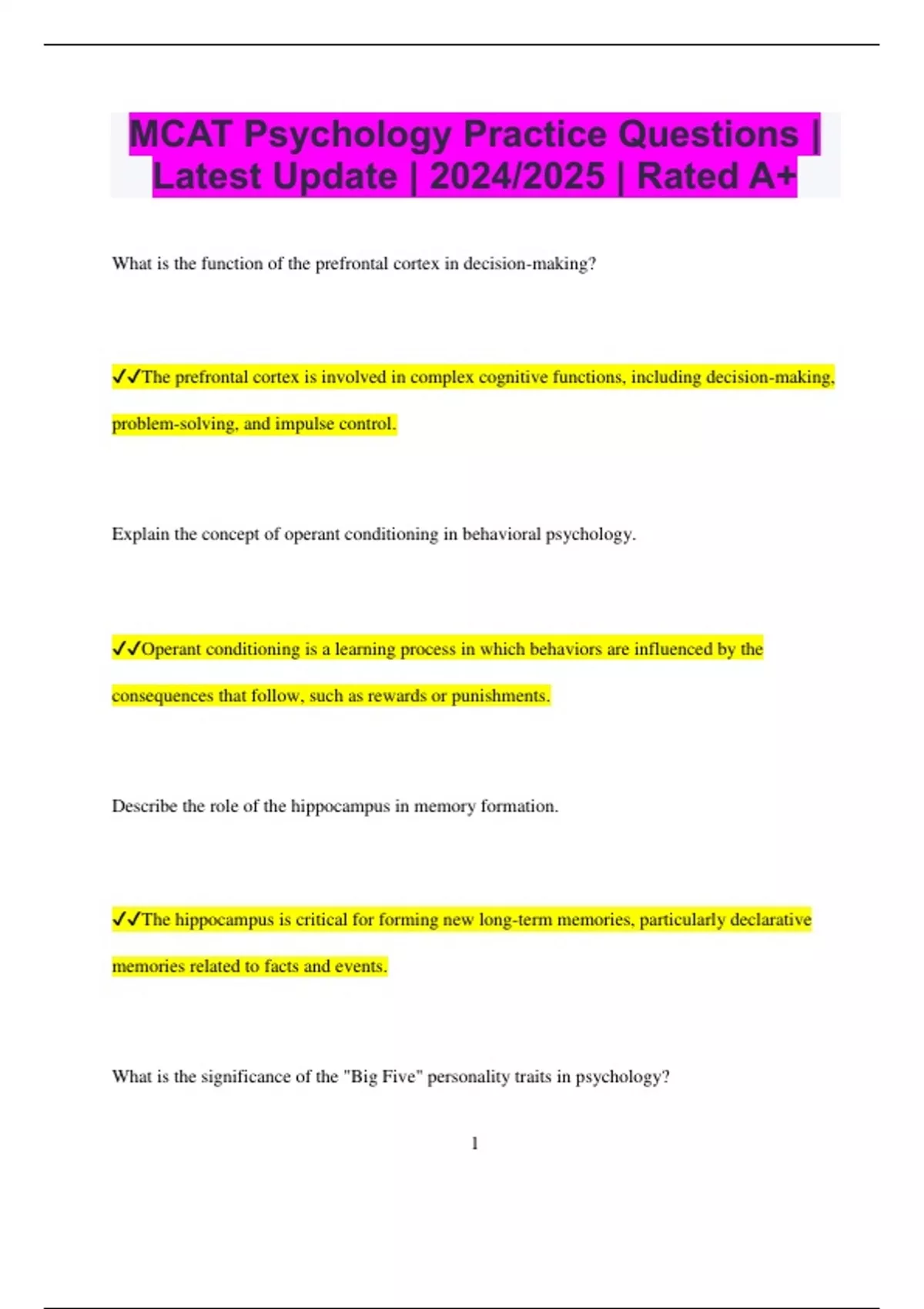 ,✔✔The "Big Five" personality traits—openness, conscientiousness, extraversion, agreeableness,