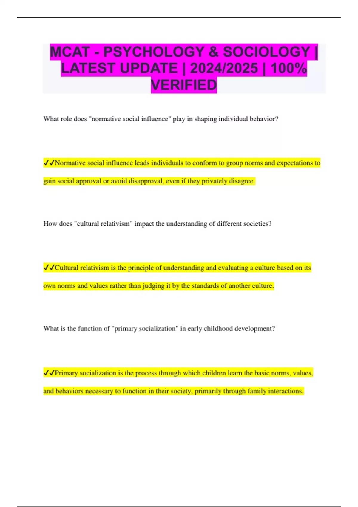 ✔✔Primary socialization is the process through which children learn the basic norms, values,