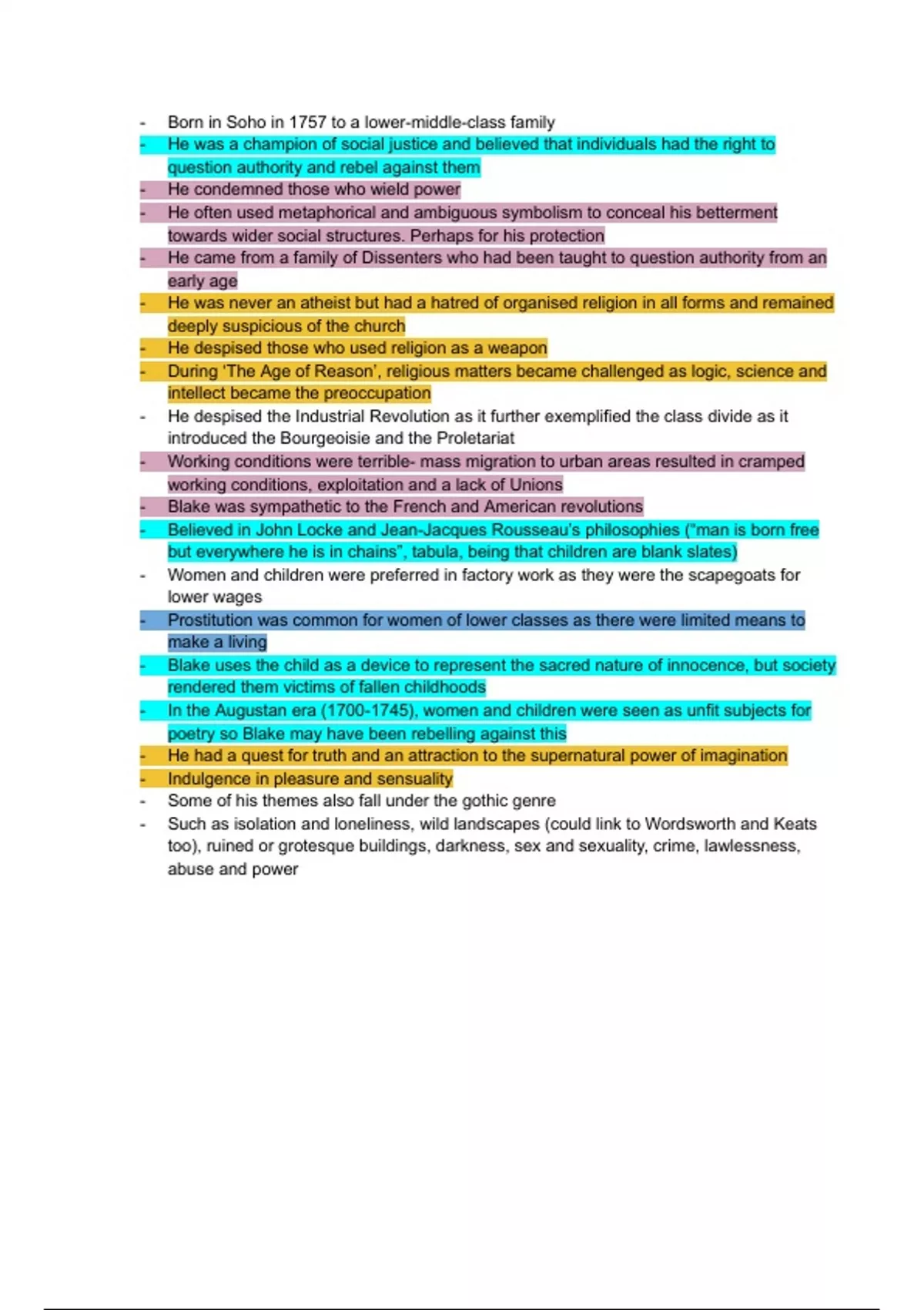 - Blake was sympathetic to the French and American revolutions