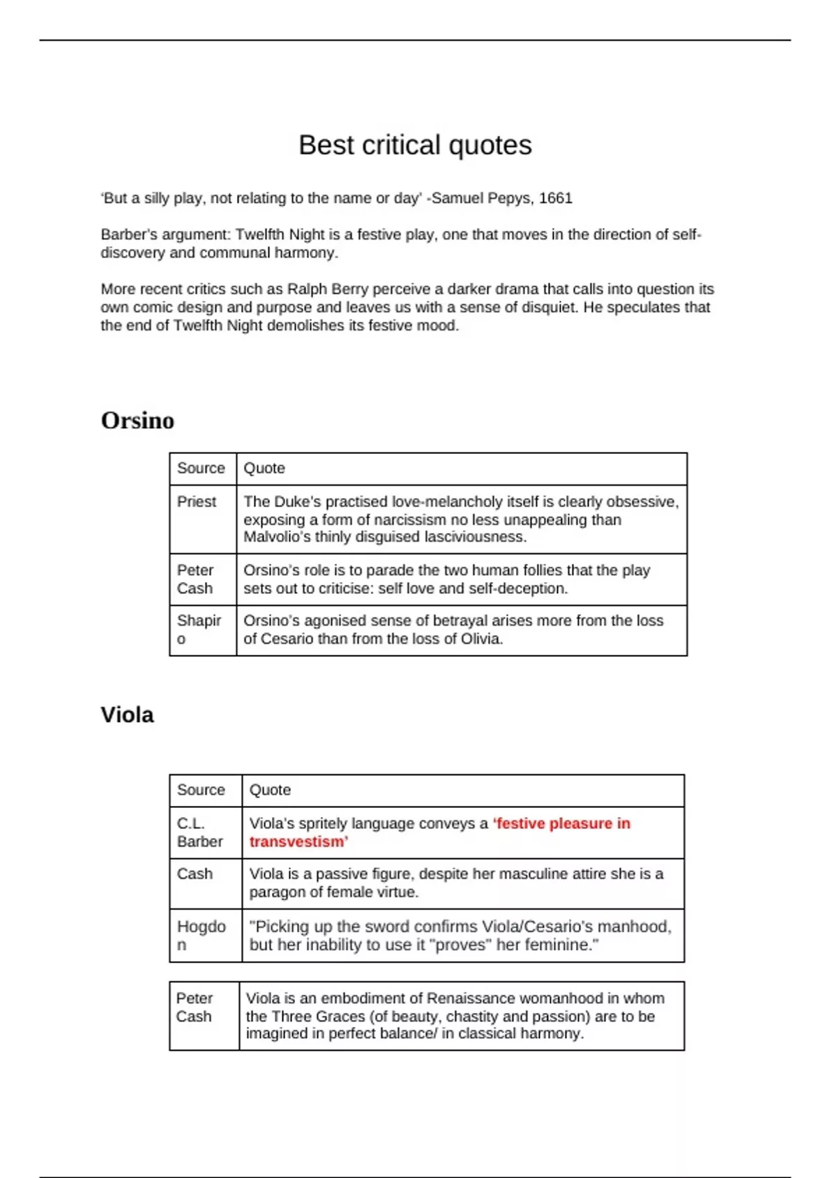 Barber’s argument: Twelfth Night is a festive play, one that moves in the direction of self-
