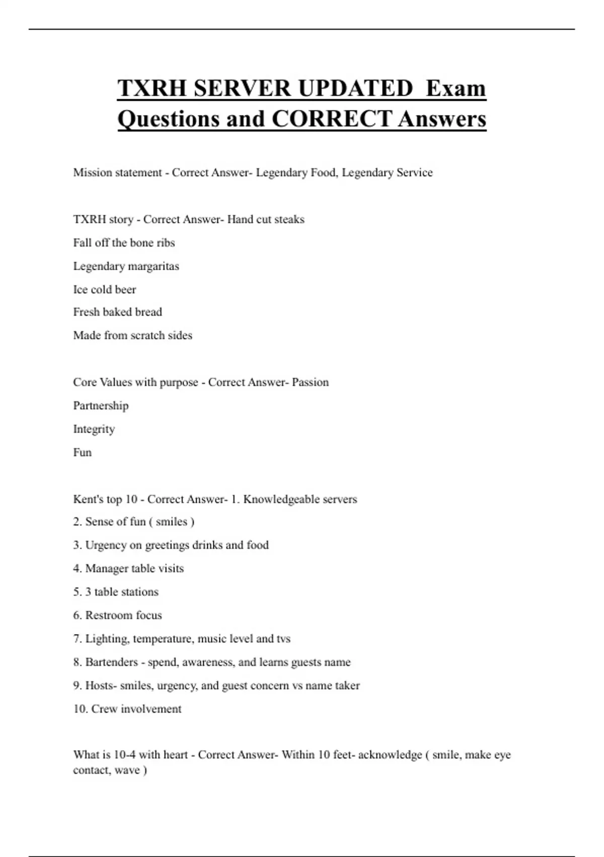 Kent's top 10 - Correct Answer- 1. Knowledgeable servers
