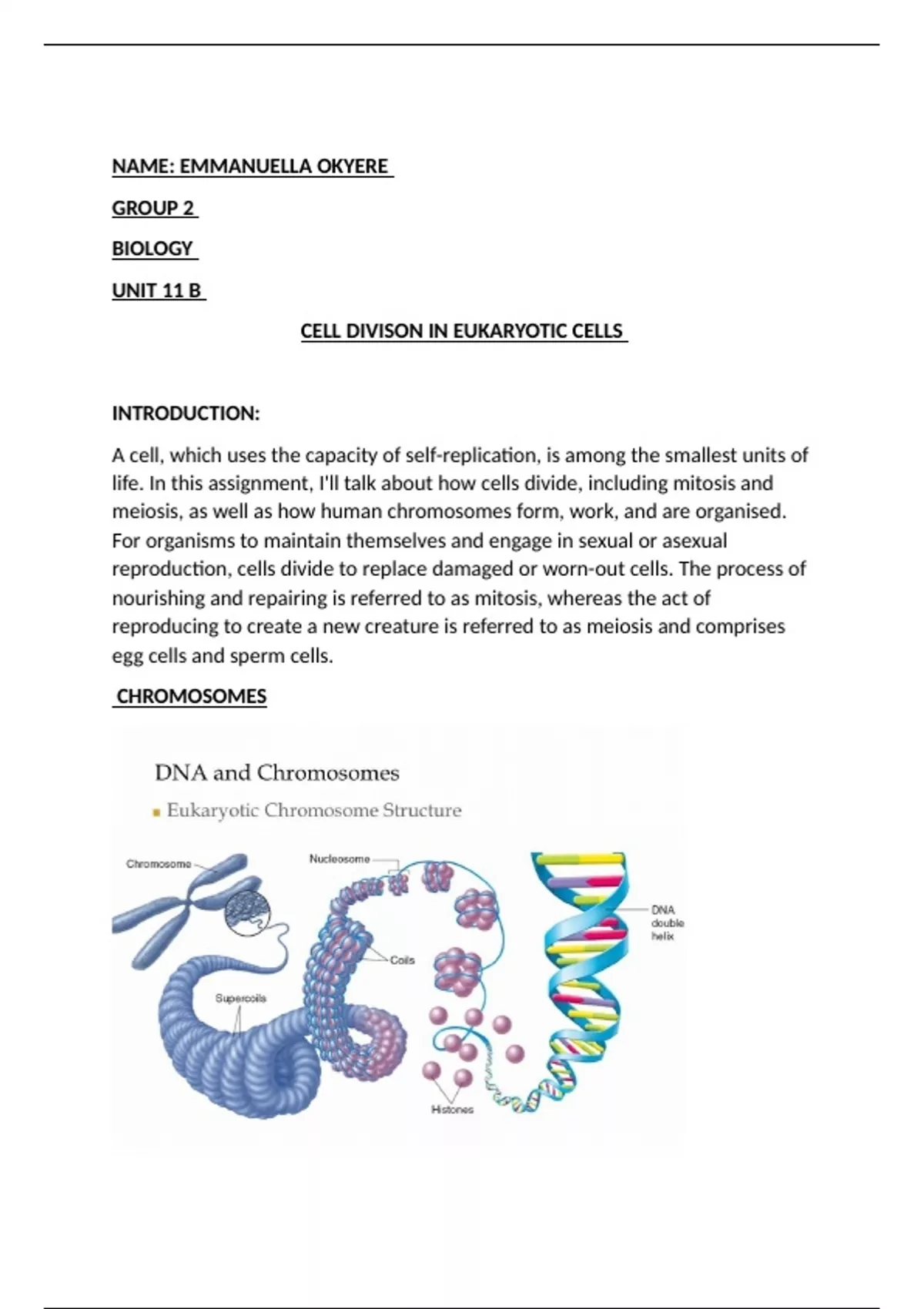 life. In this assignment, I'll talk about how cells divide, including mitosis and