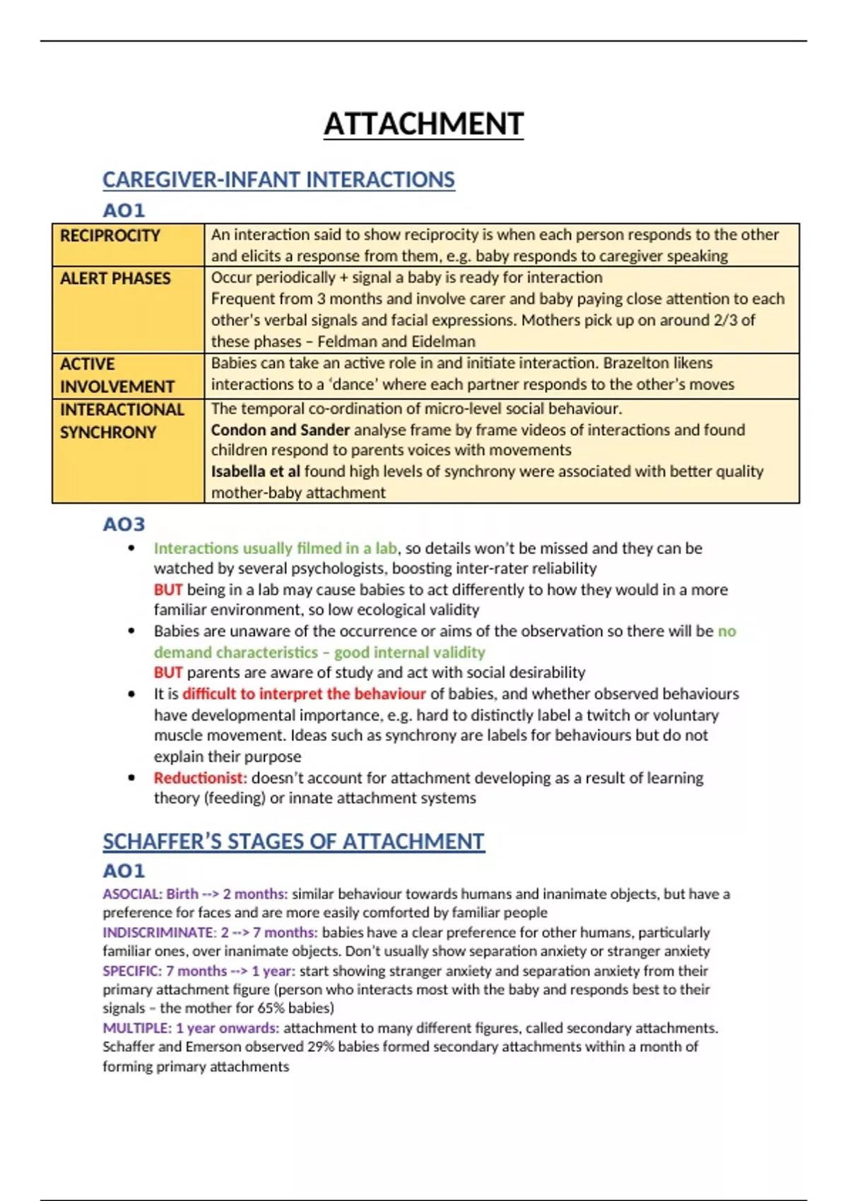 This includes condensed notes for the attachment topic and has clear AO1 points as well as a range of AO3 (evaluation) points