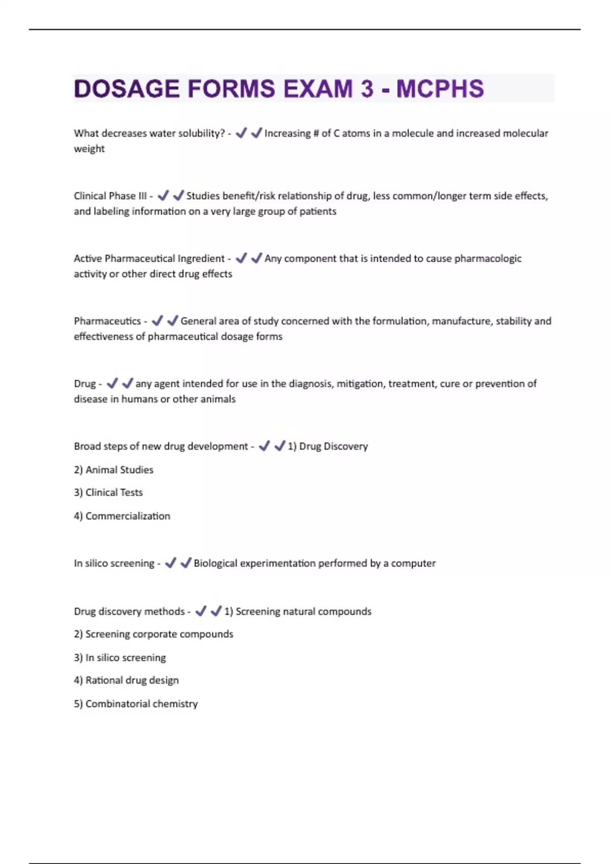 DOSAGE FORMS EXAM 3 - MCPHS QUESTIONS & ANSWERS VERIFIED 100% CORRECT