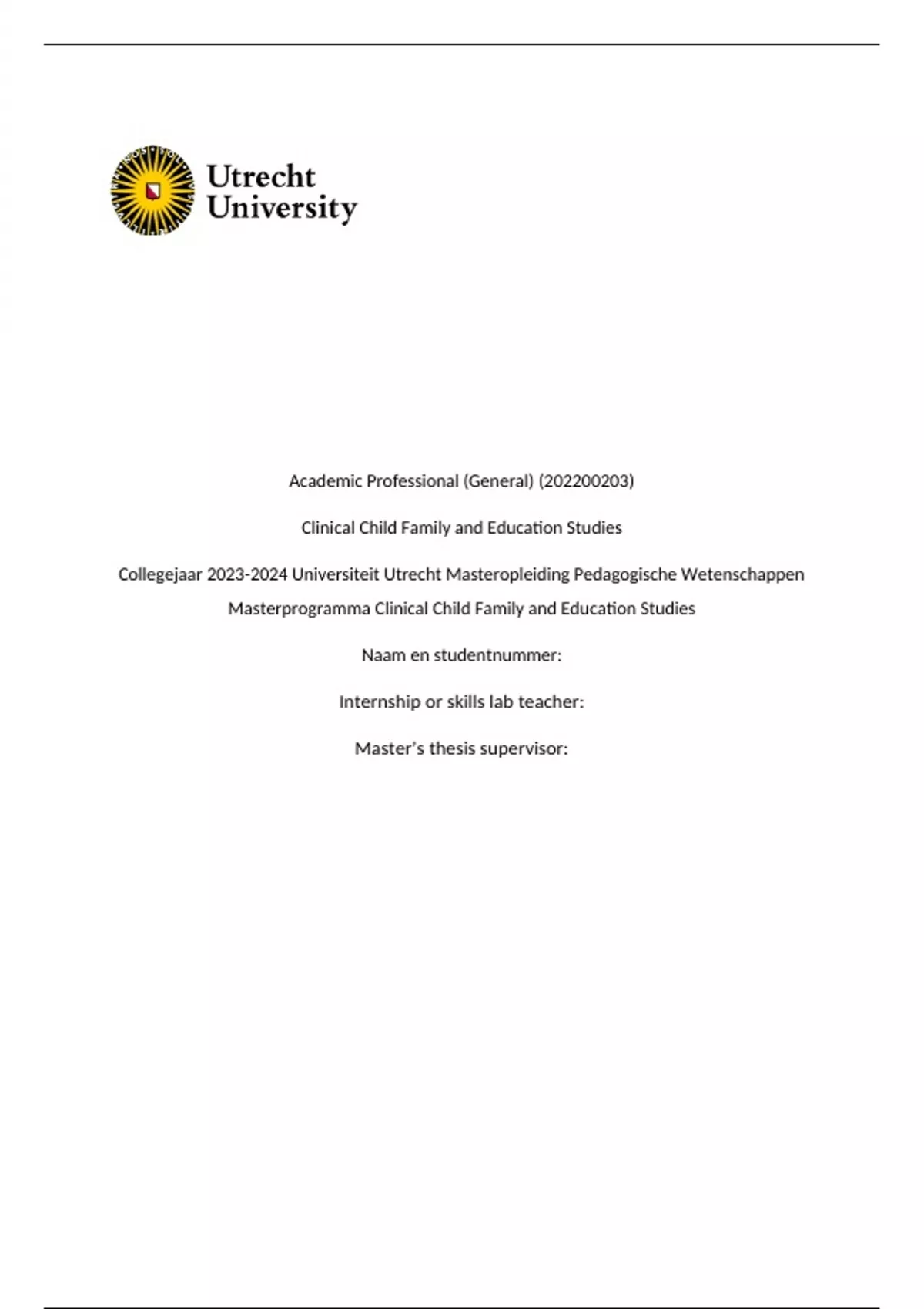 Collegejaar 2023-2024 Universiteit Utrecht Masteropleiding Pedagogische Wetenschappen