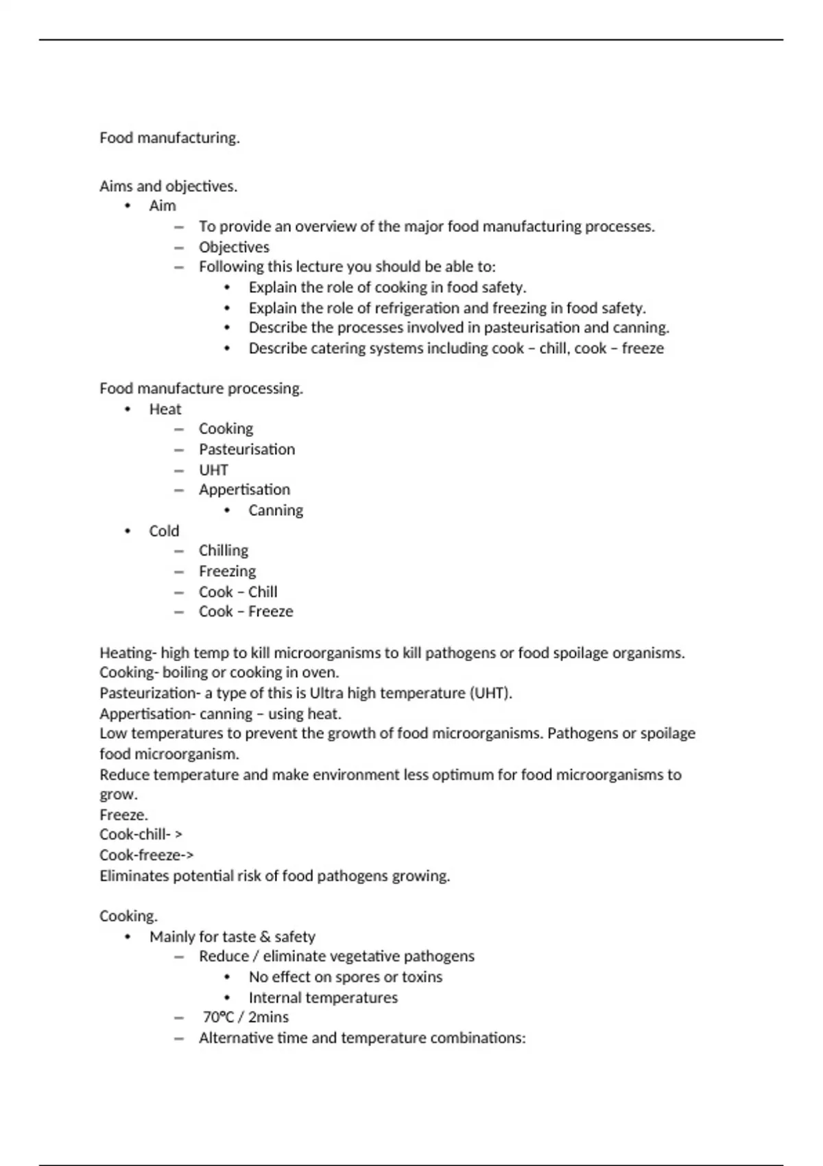 Heating- high temp to kill microorganisms to kill pathogens or food spoilage organisms.