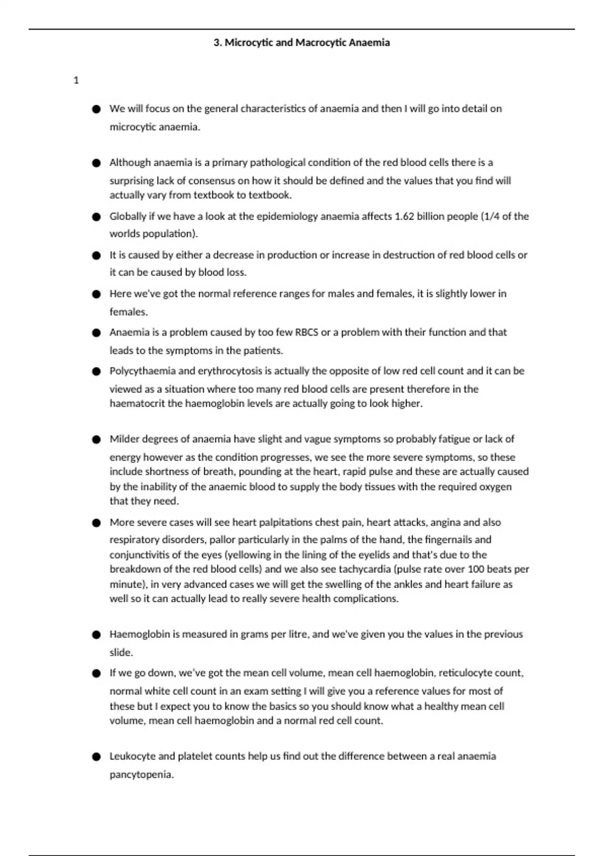 ● We will focus on the general characteristics of anaemia and then I will go into detail on