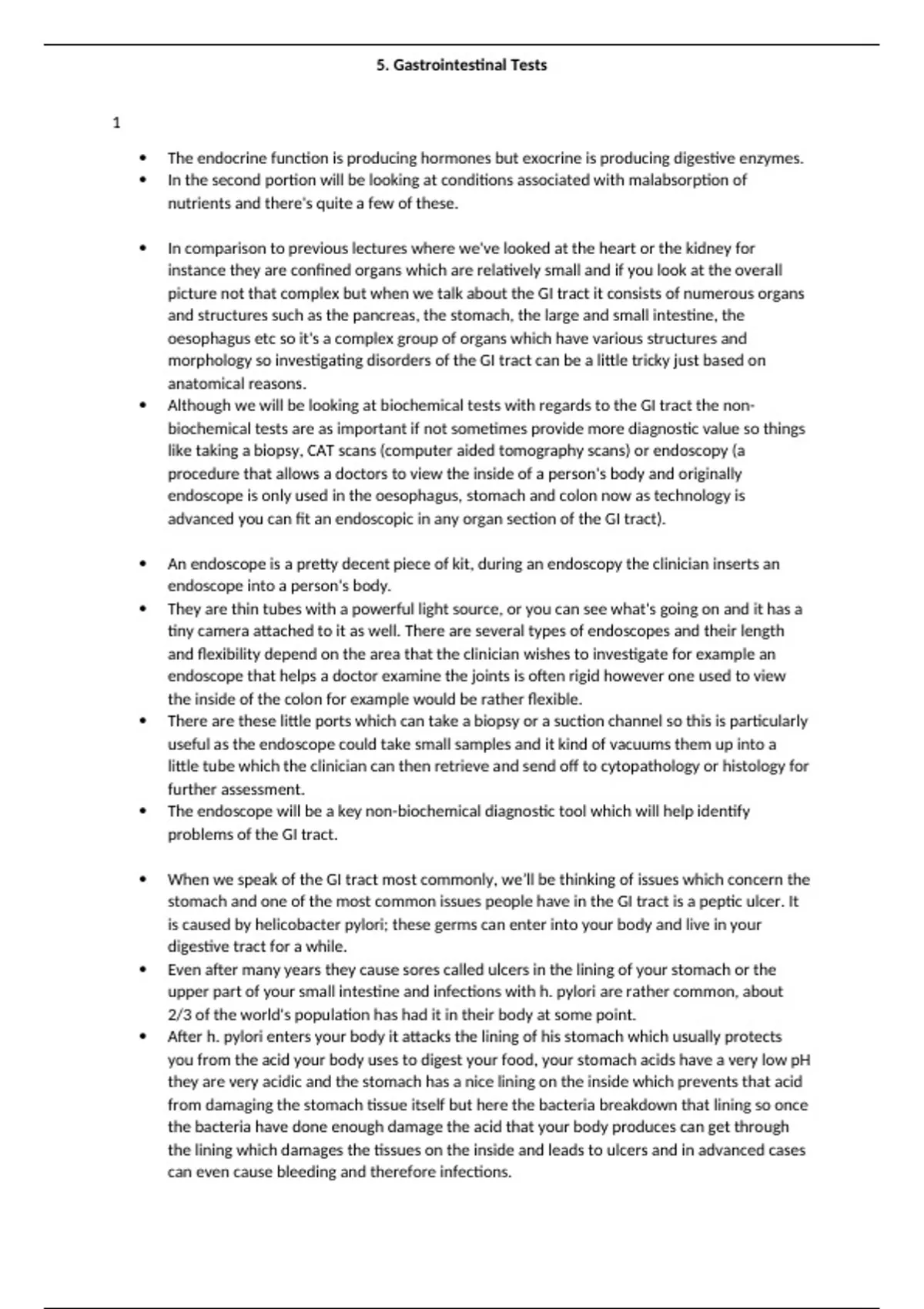 Although we will be looking at biochemical tests with regards to the GI tract the non-
