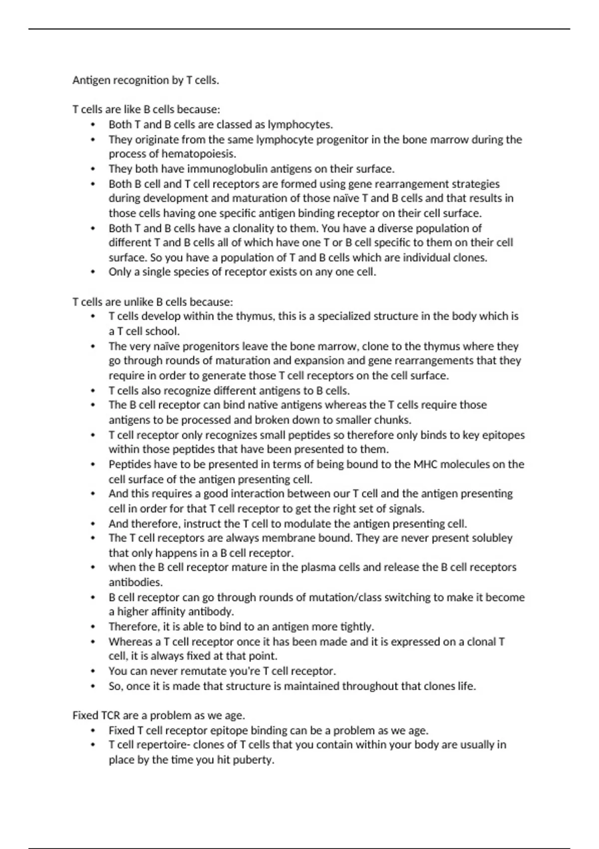 • You can never remutate you're T cell receptor.