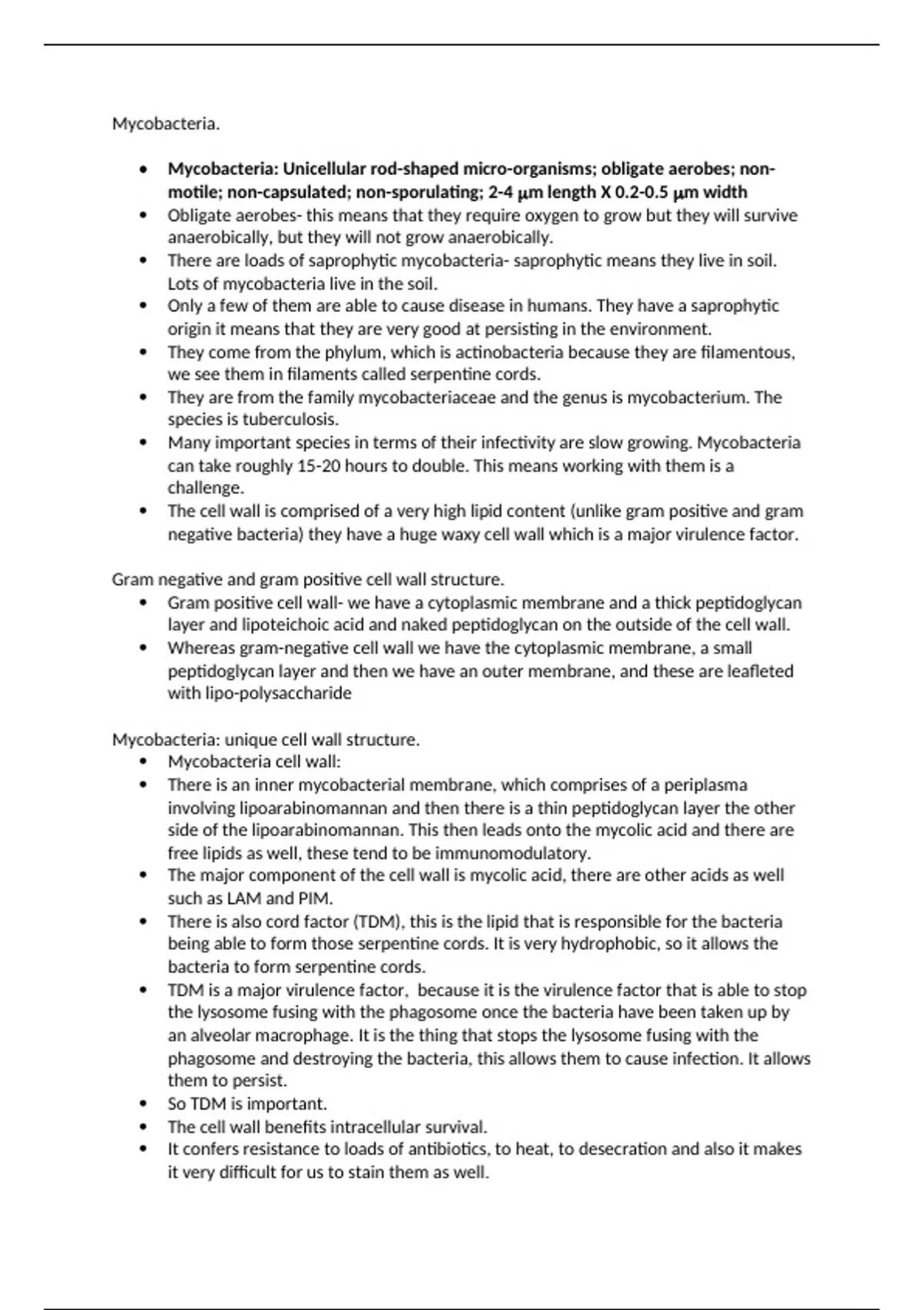 Mycobacteria: Unicellular rod-shaped micro-organisms; obligate aerobes; non-