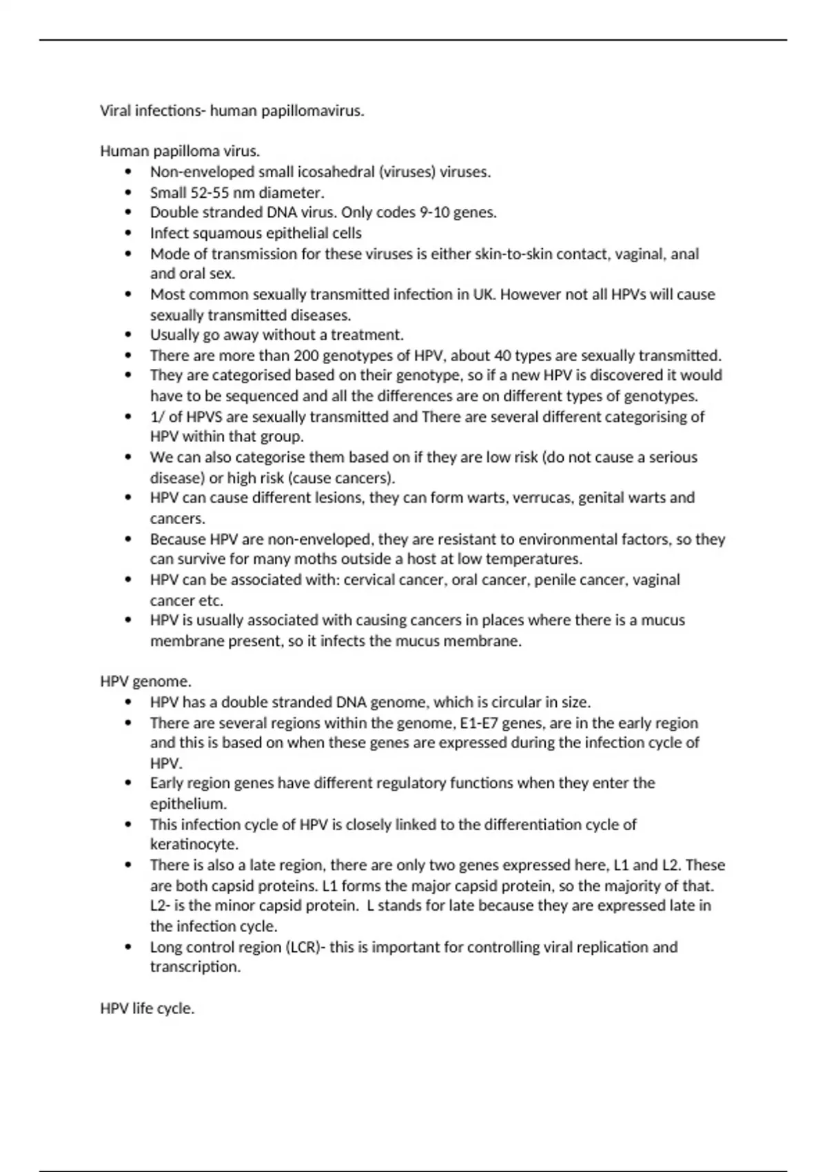 HPV life cycle.