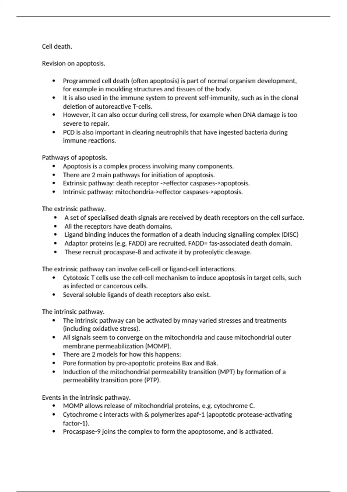 Extrinsic pathway: death receptor ->effector caspases->apoptosis.