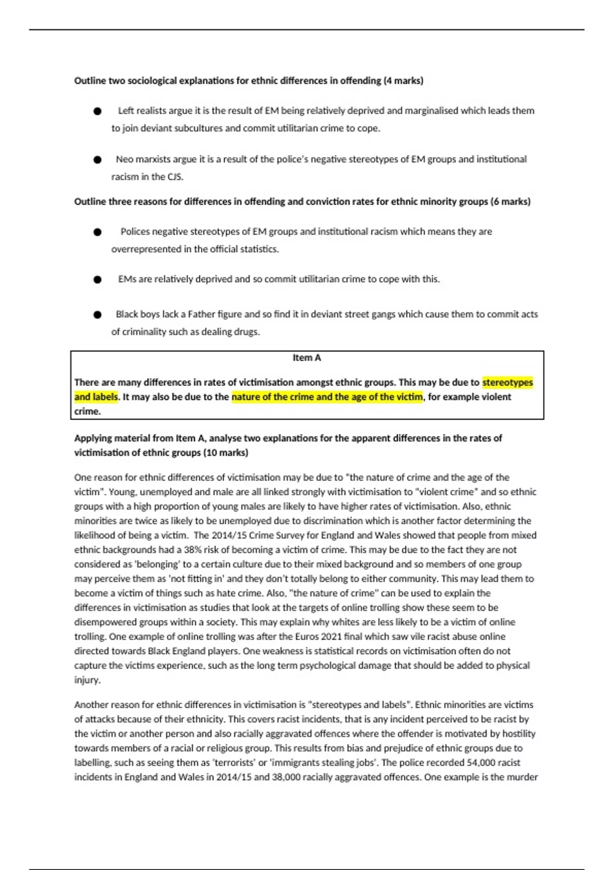 victimisation of ethnic groups (10 marks)