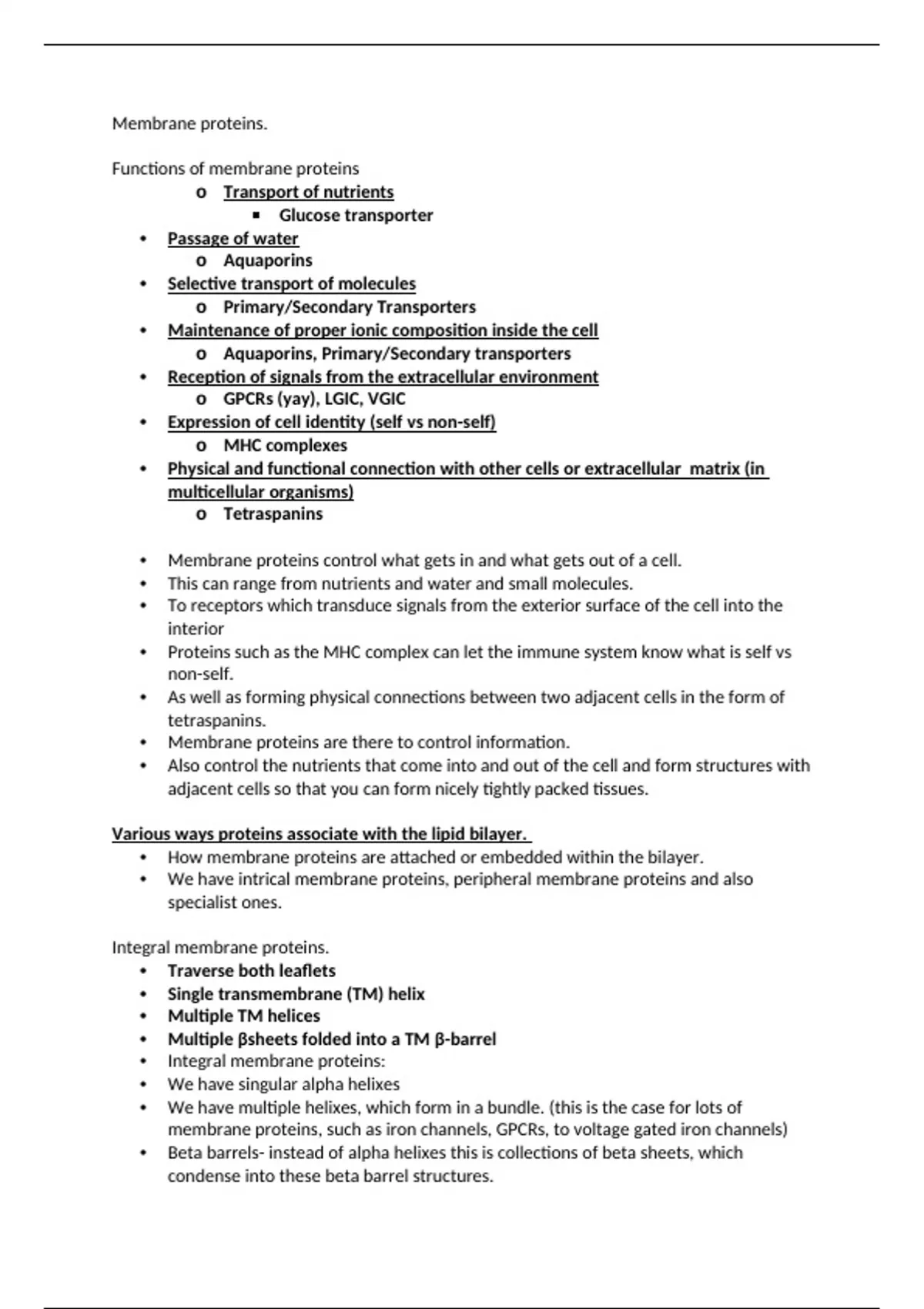 • We have intrical membrane proteins, peripheral membrane proteins and also
