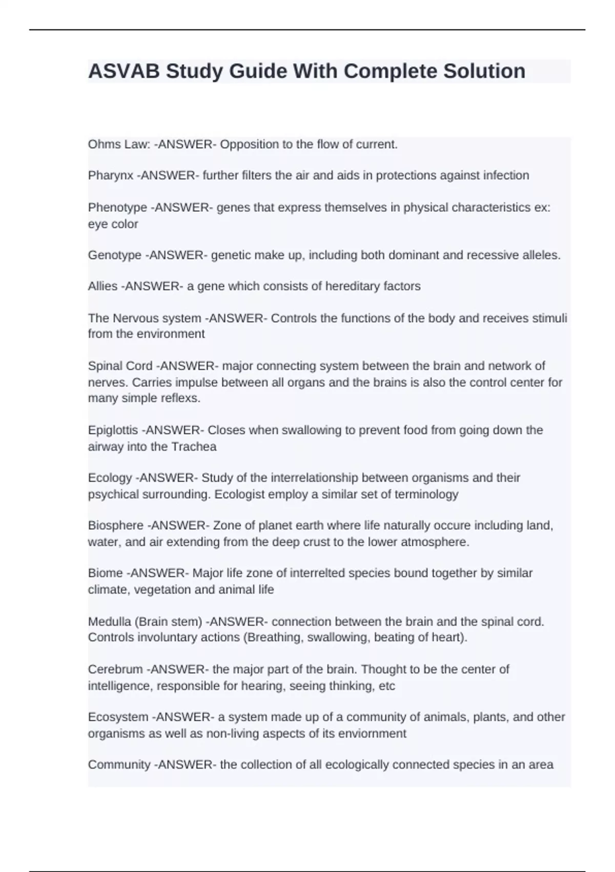 Ecosystem -ANSWER- a system made up of a community of animals, plants, and other
