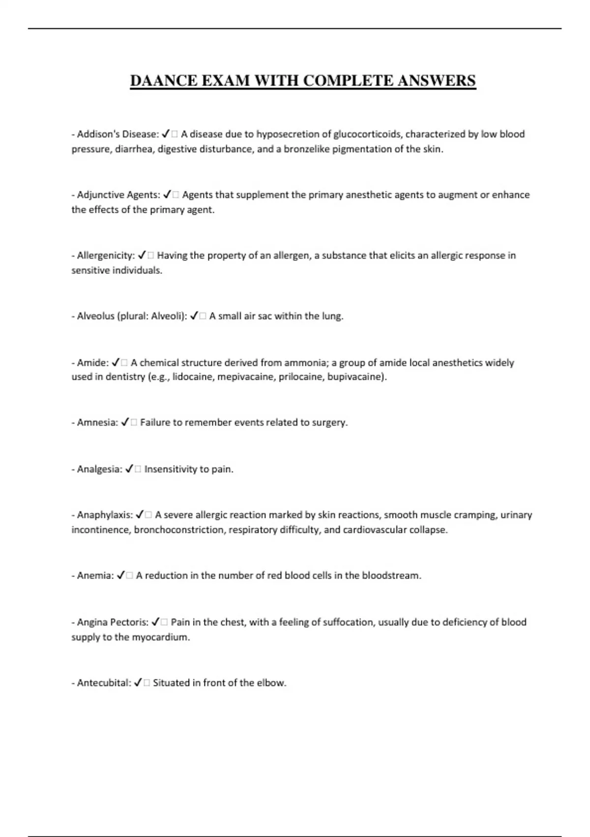 - Anxiolytic: ✔️ Drugs that reduce anxiety, agitation, or tension (e.g., Valium, midazolam).