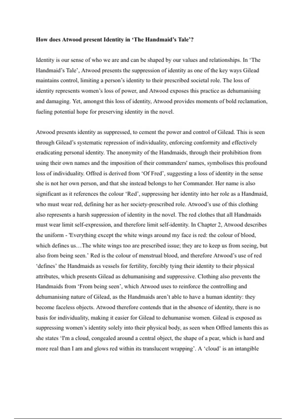 Atwood presents identity as suppressed, to cement the power and control of Gilead. This is seen