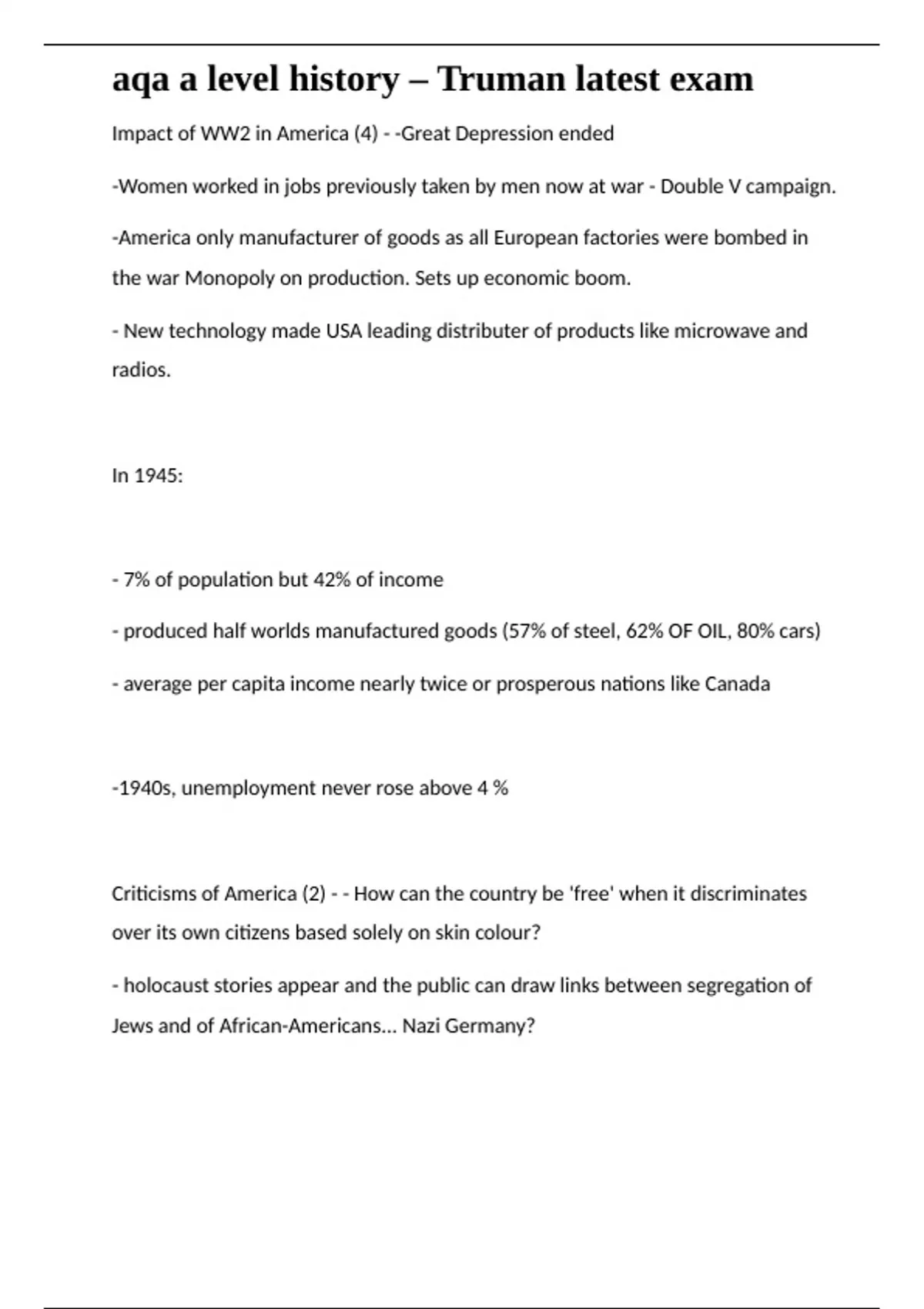 - produced half worlds manufactured goods (57% of steel, 62% OF OIL, 80% cars)