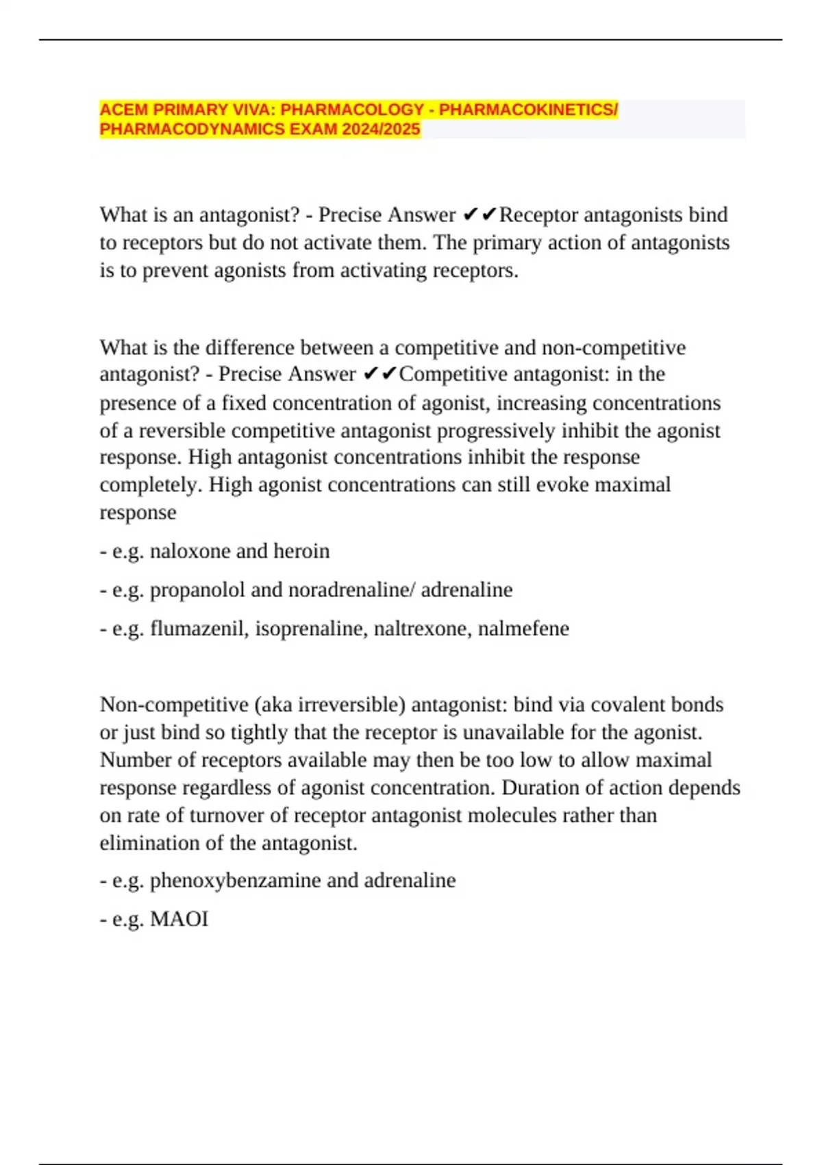 PHARMACODYNAMICS EXAM 2024/2025
