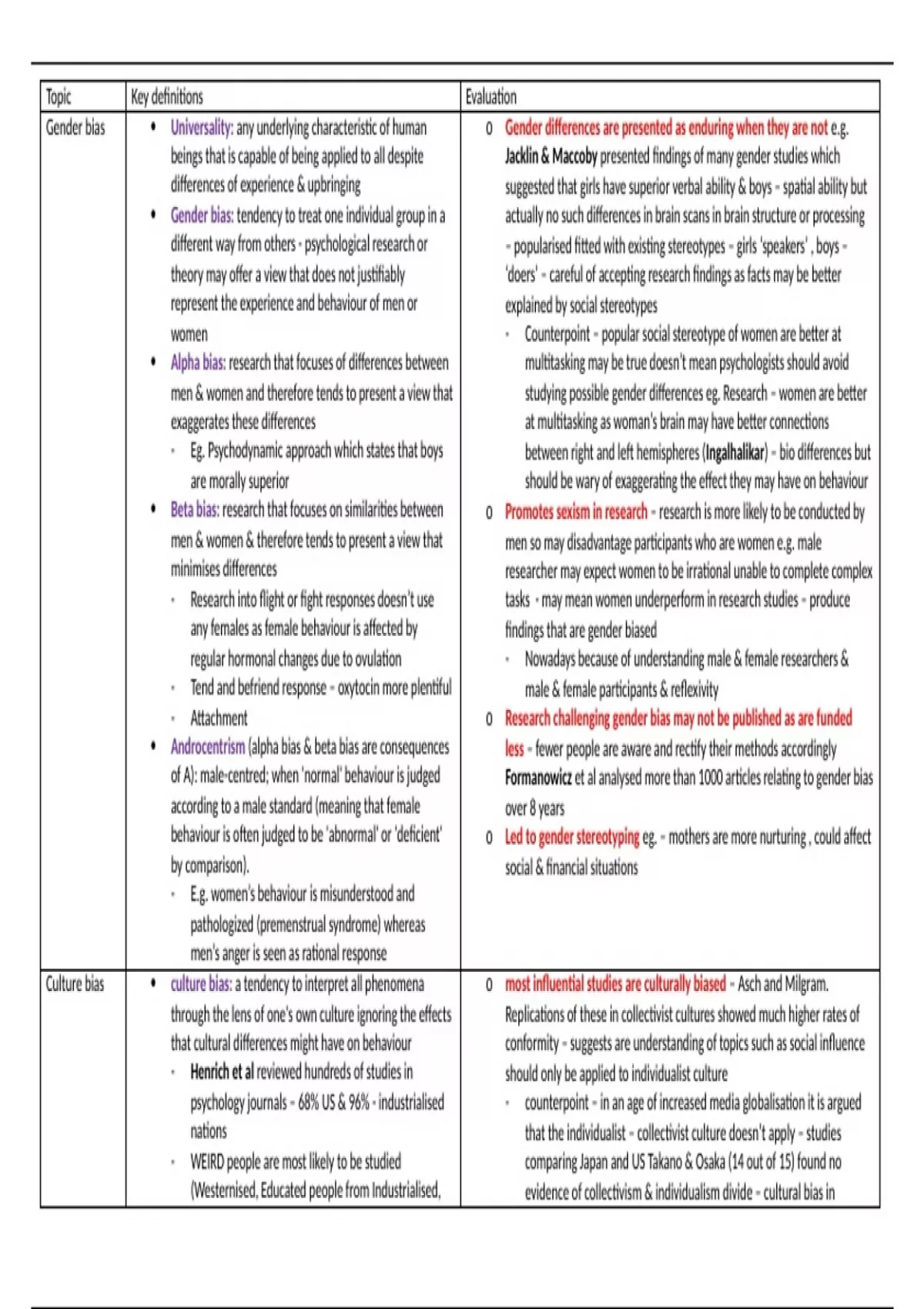 Beta bias: research that focuses on similarities between o Promotes sexism in research – research is more likely to be conducted by