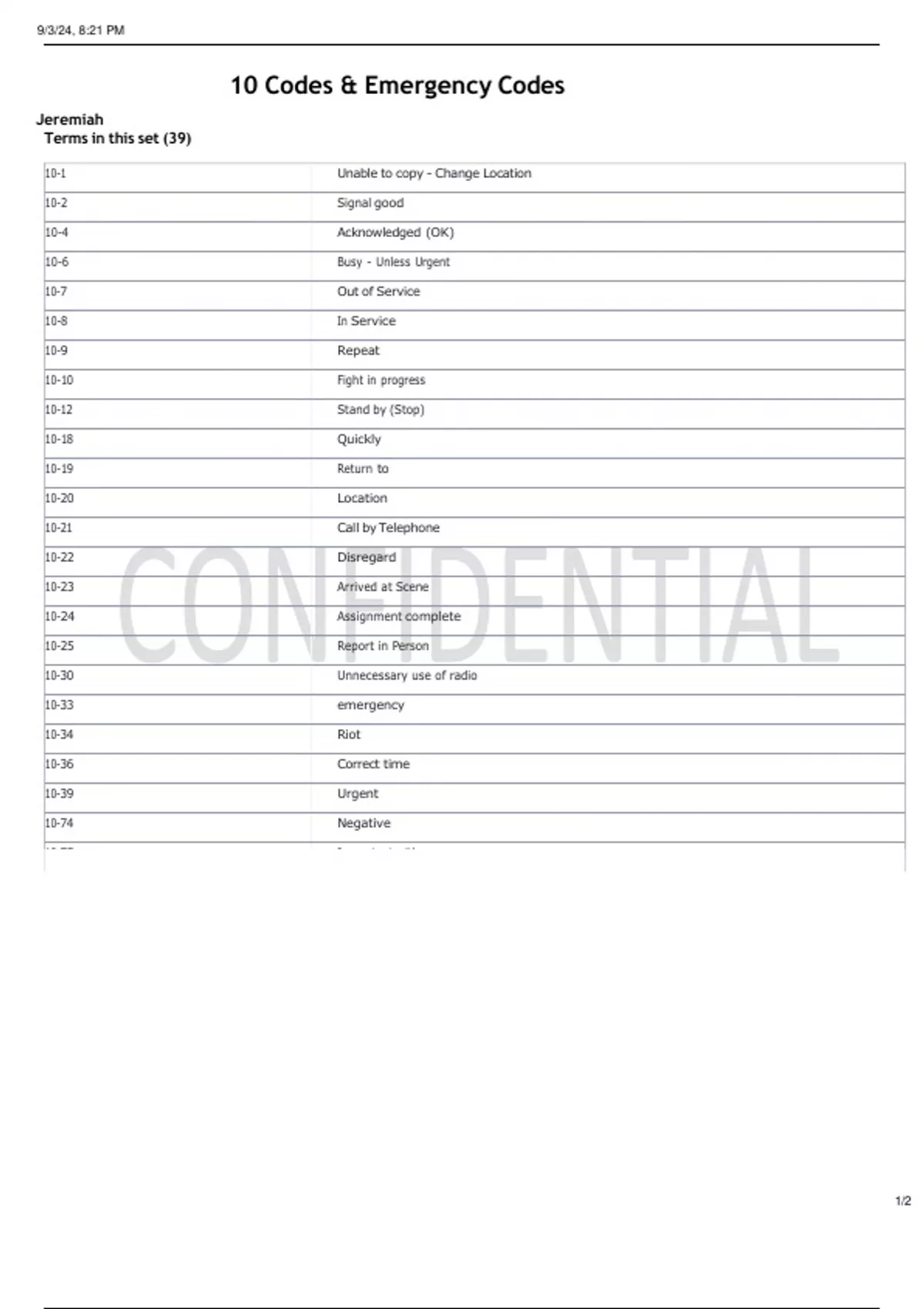 10 Codes & Emergency Codes