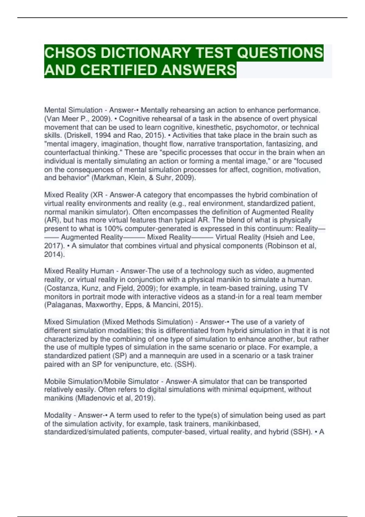 Mixed Simulation (Mixed Methods Simulation) - Answer-• The use of a variety of