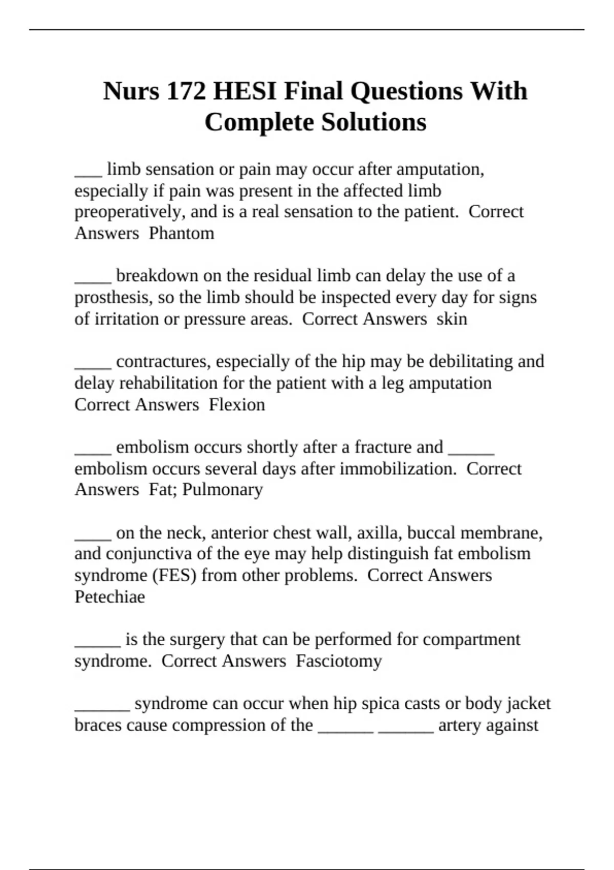 syndrome. Correct Answers Fasciotomy