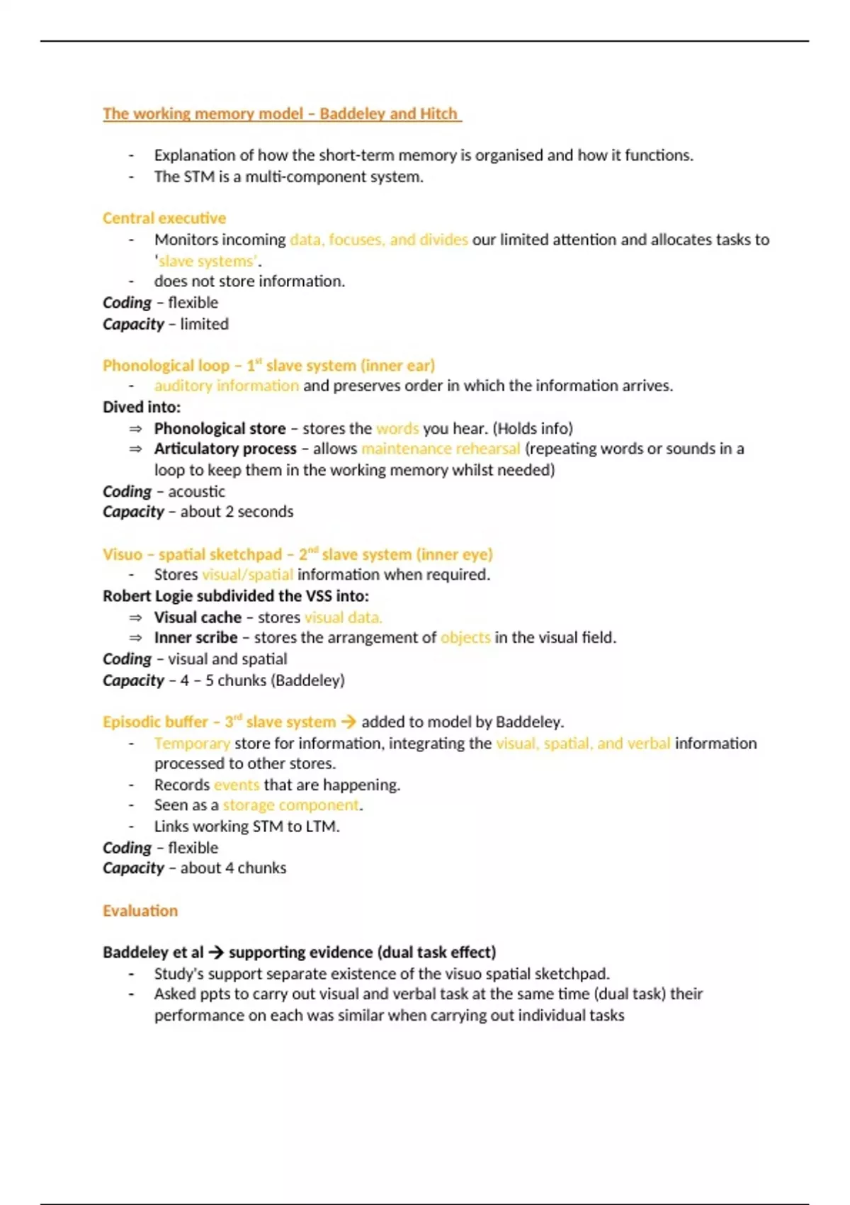 The working memory model – Baddeley and Hitch