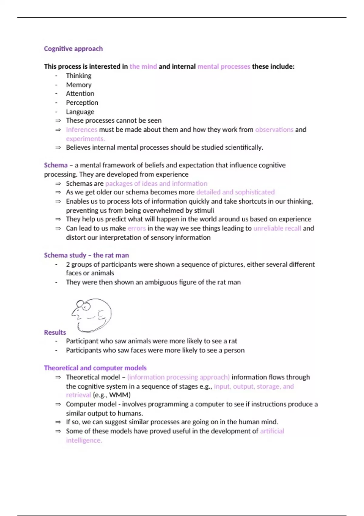 notes on cognitive approach within topic of approaches for aqa a level psych