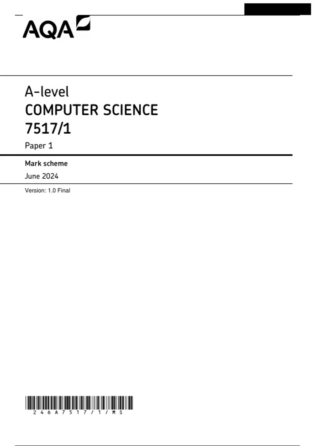, MARK SCHEME – A-LEVEL COMPUTER SCIENCE – 7517/1 – JUNE 2024