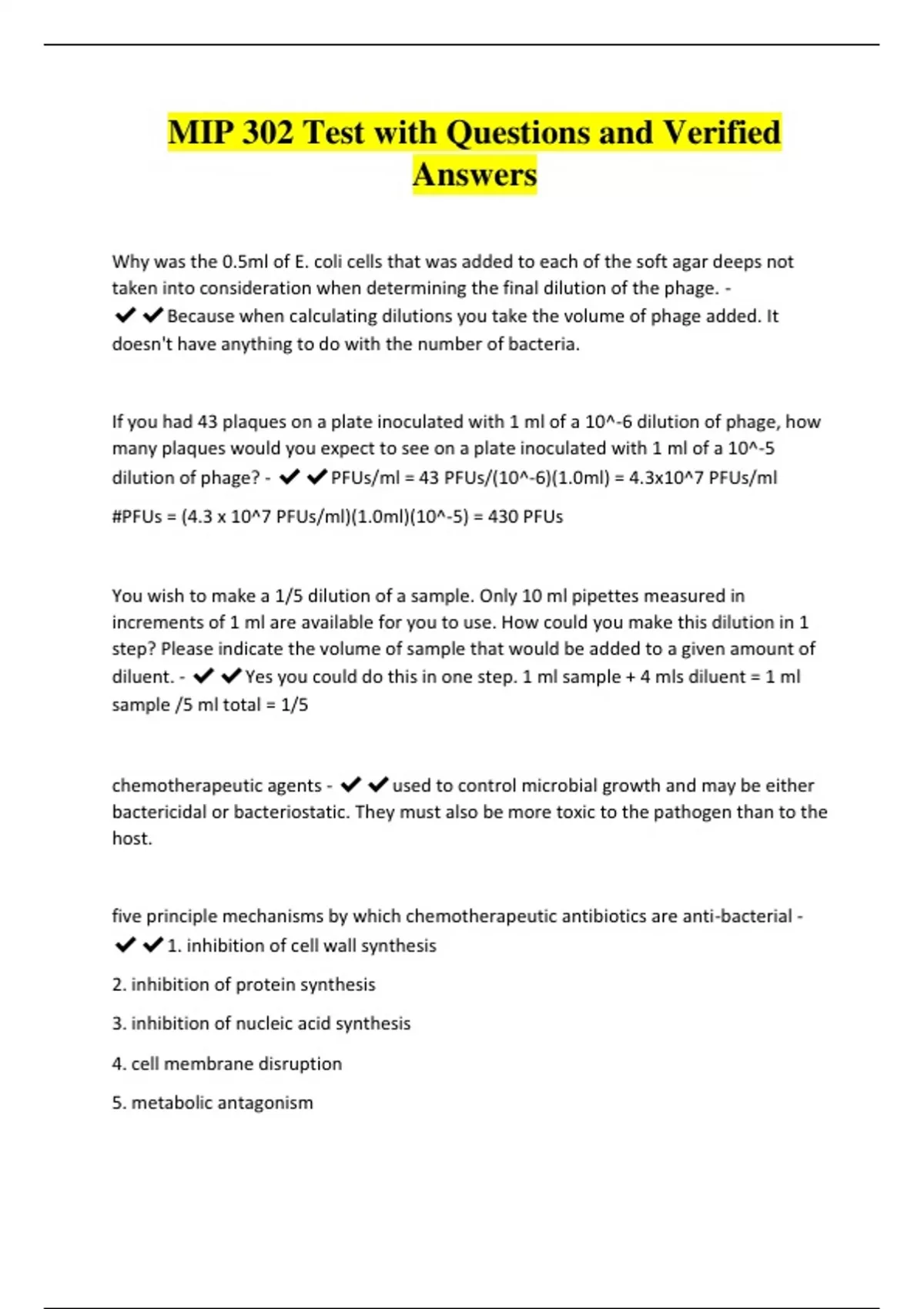 dilution of phage? - ✔✔PFUs/ml = 43 PFUs/(10^-6)(1.0ml) = 4.3x10^7 PFUs/ml