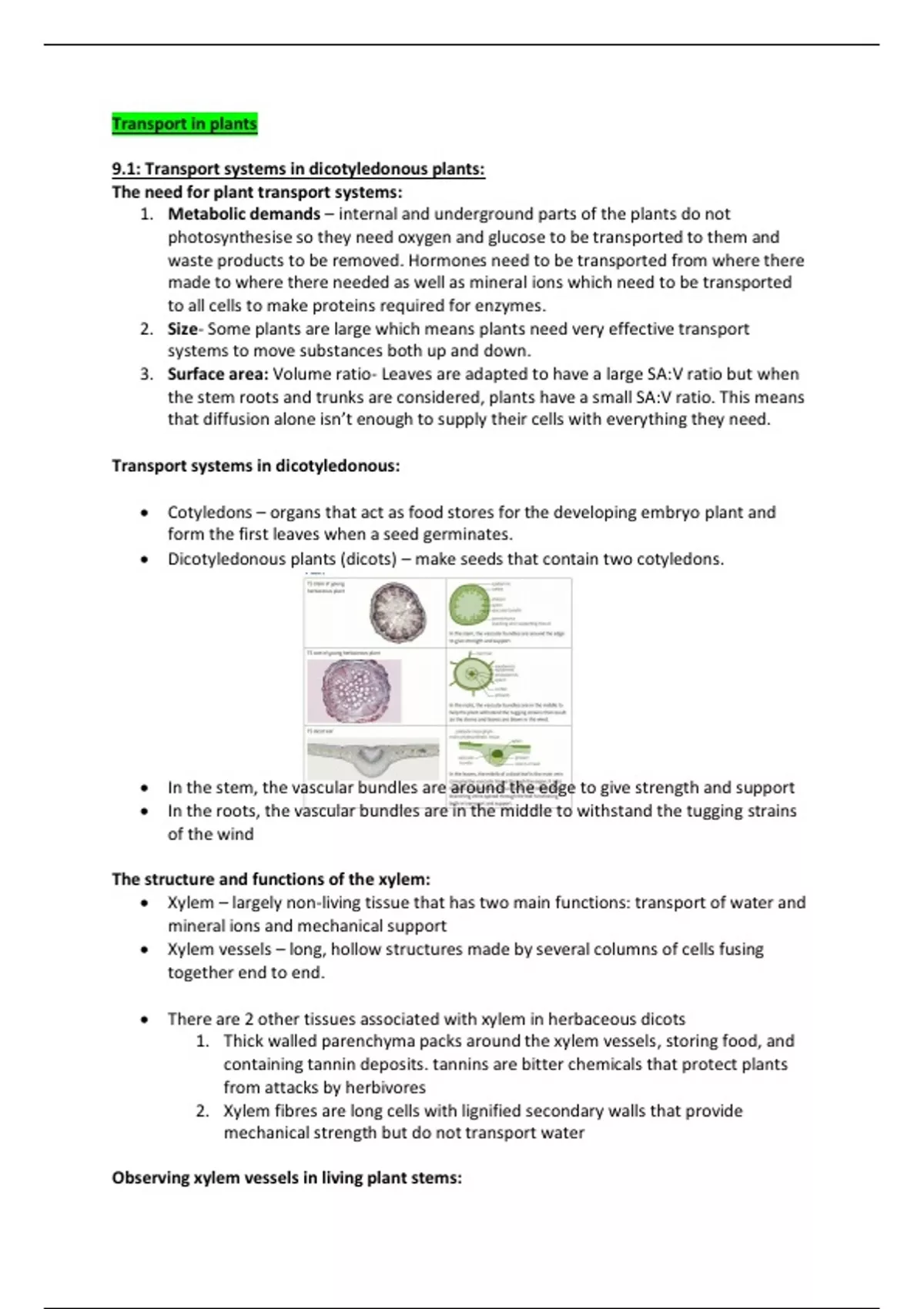 9.1: Transport systems in dicotyledonous plants: