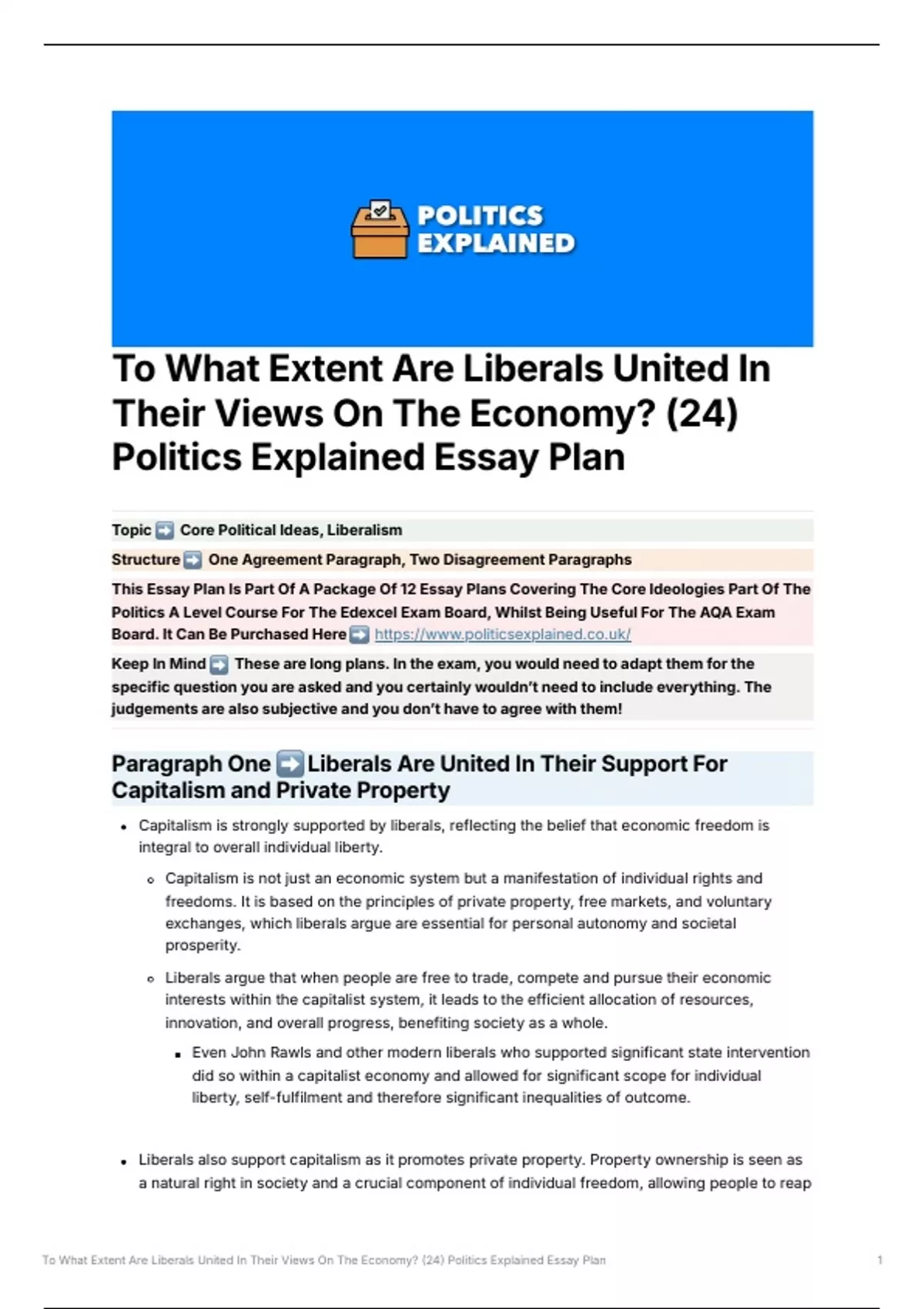 To What Extent Are Liberals United In Their Views On The Economy? (24) Politics Explained Essay Plan 1