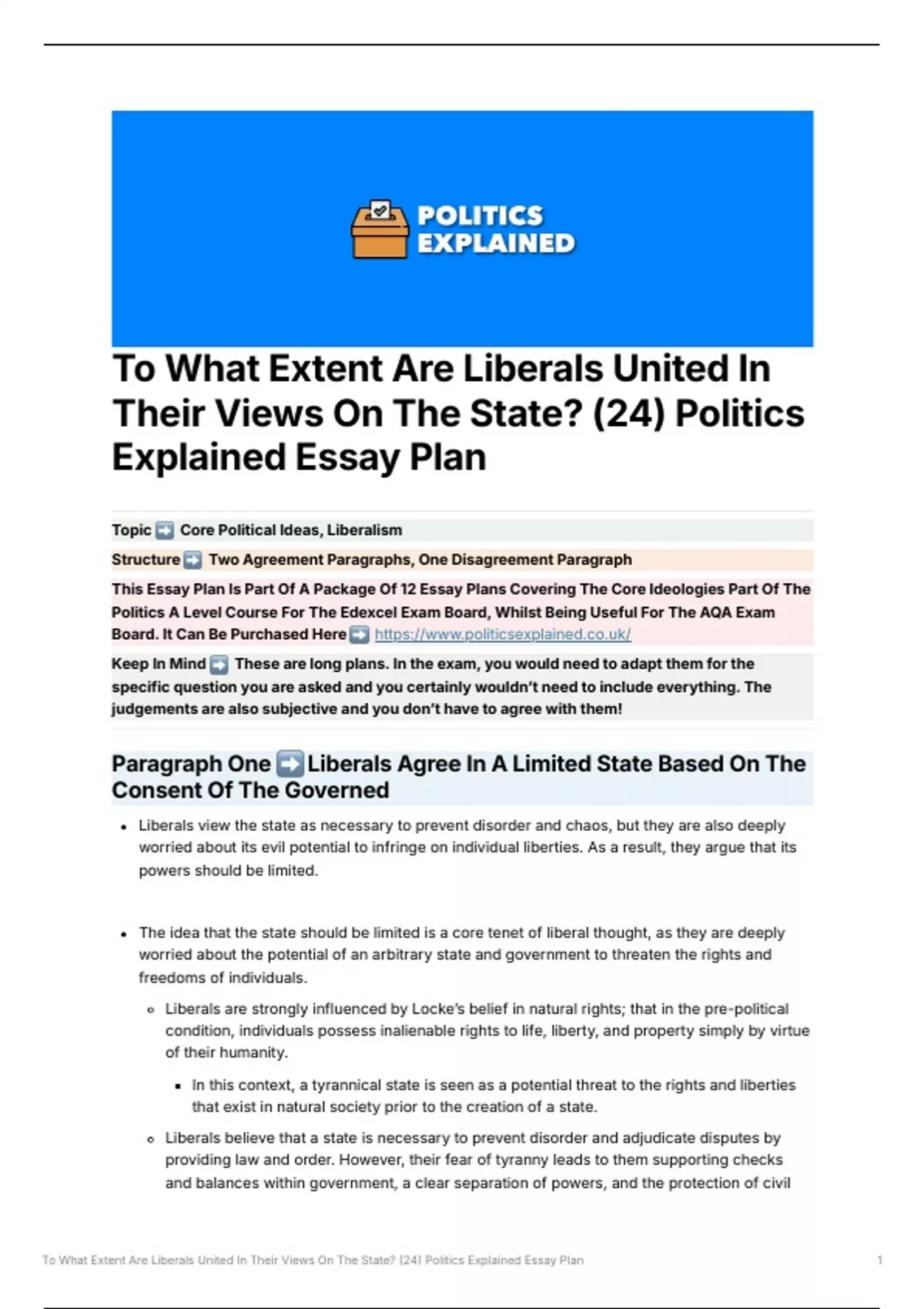 To What Extent Are Liberals United In Their Views On The State? (24) Politics Explained Essay Plan 1