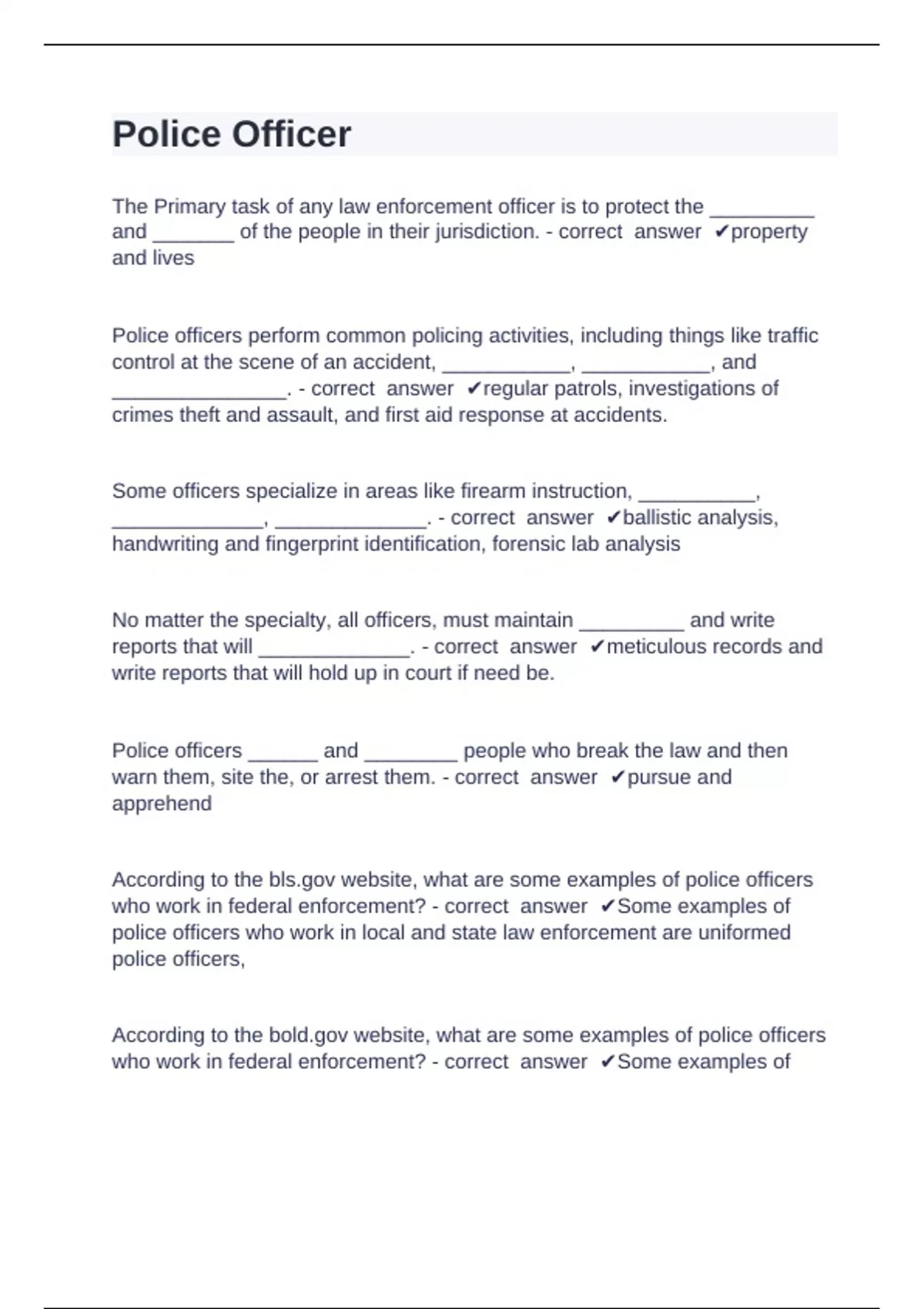 According to the bls.gov website, what are some examples of police officers