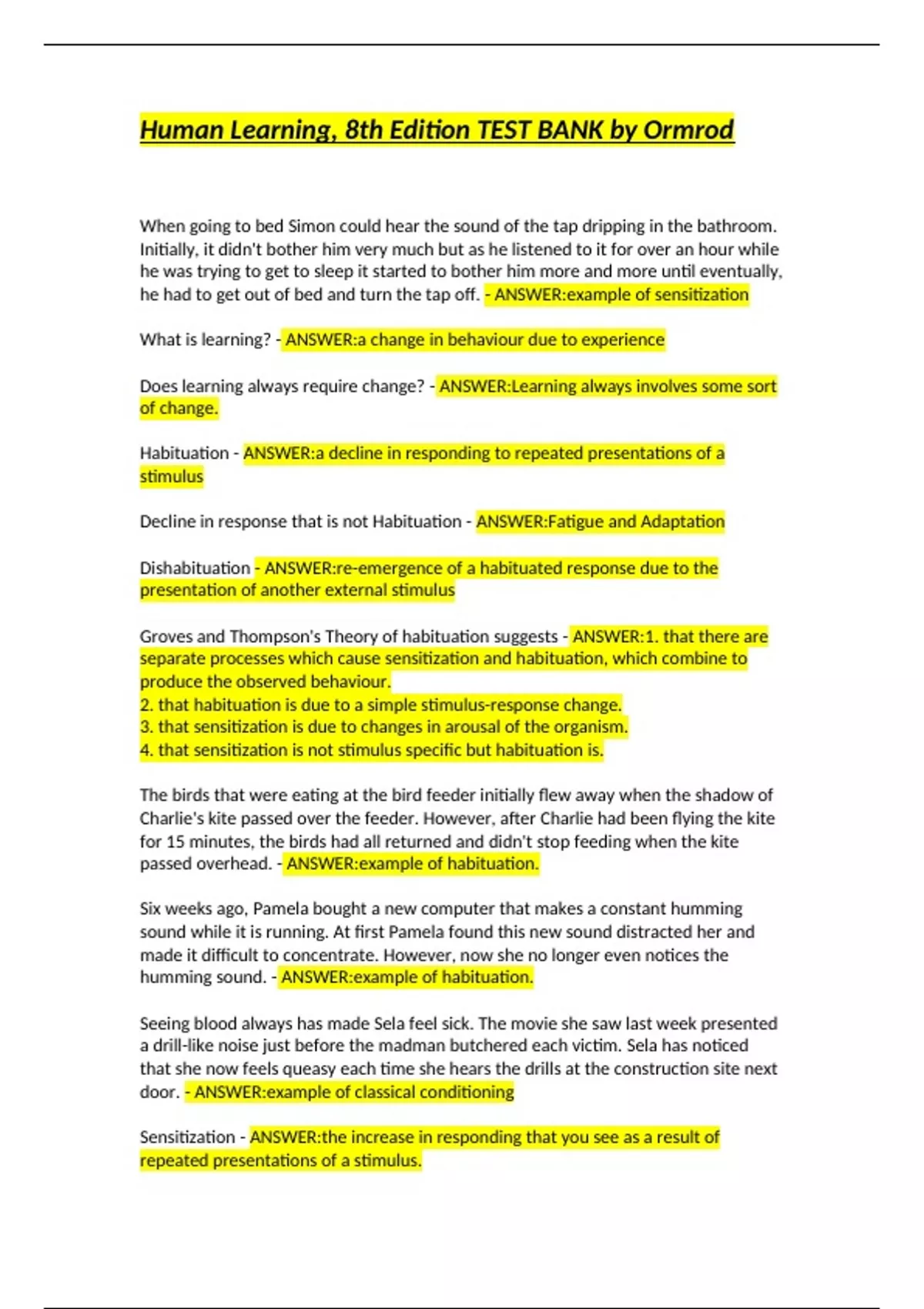 What is learning? - ANSWER:a change in behaviour due to experience