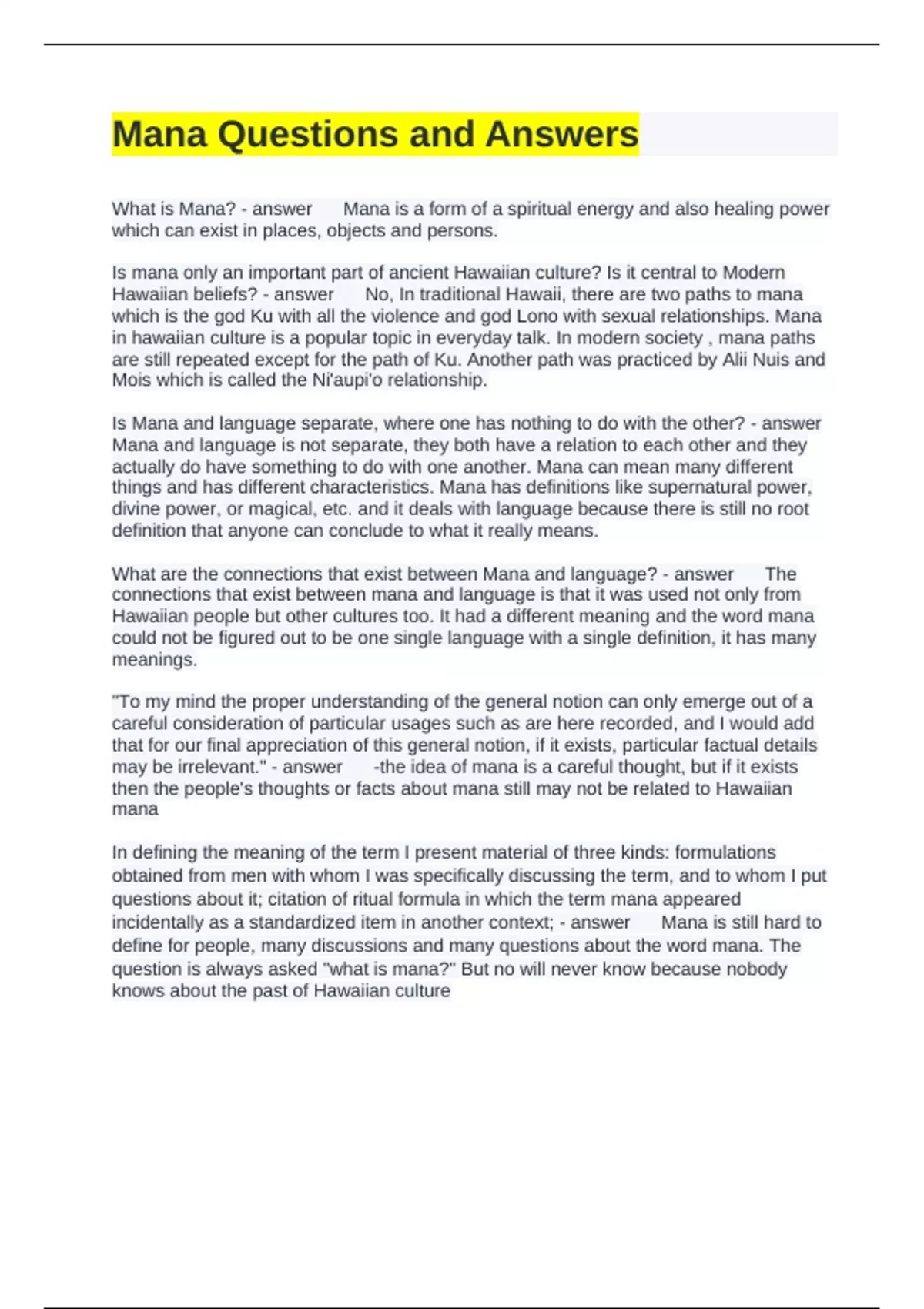 questions about it; citation of ritual formula in which the term mana appeared