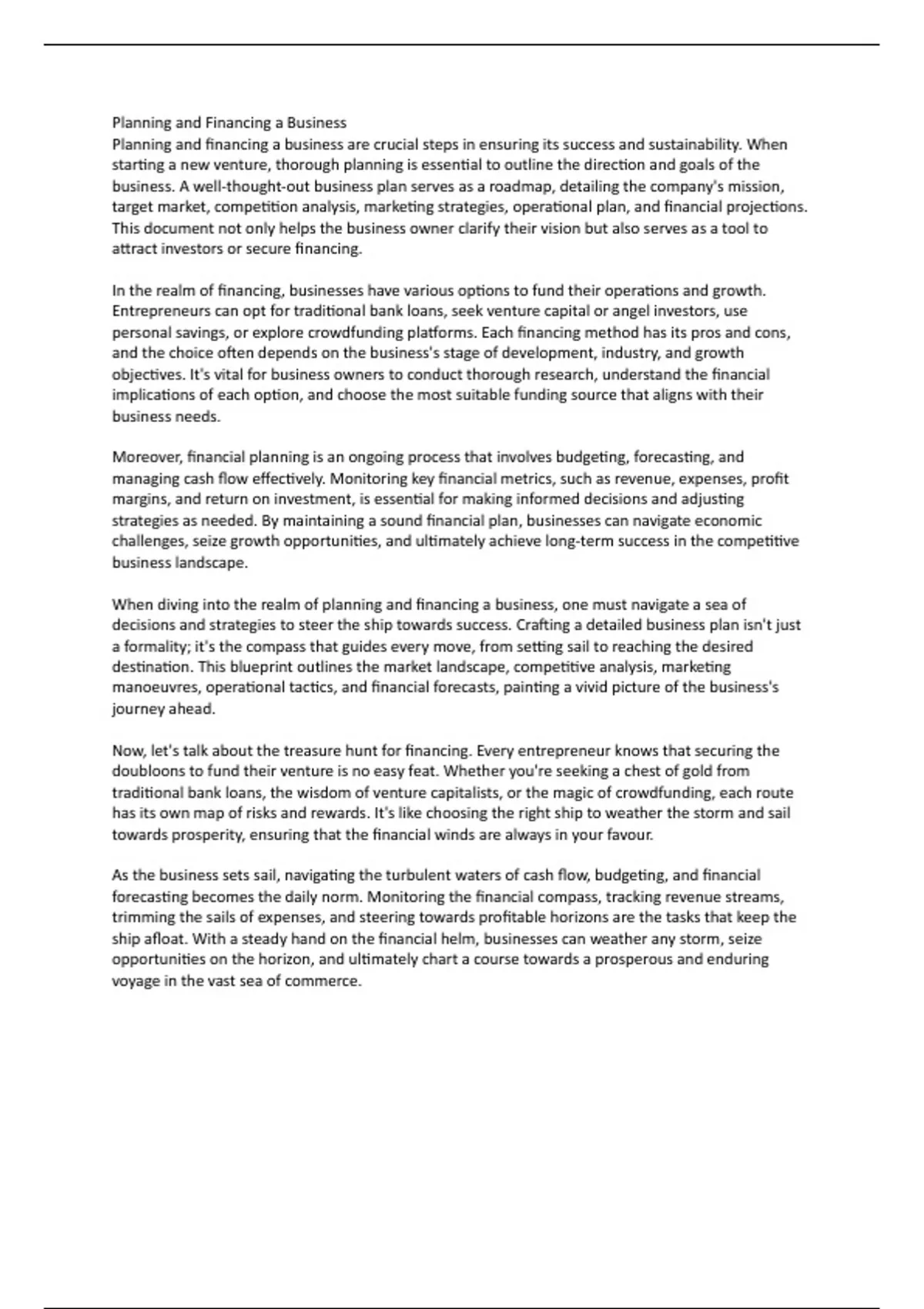When diving into the realm of planning and financing a business, one must navigate a sea of