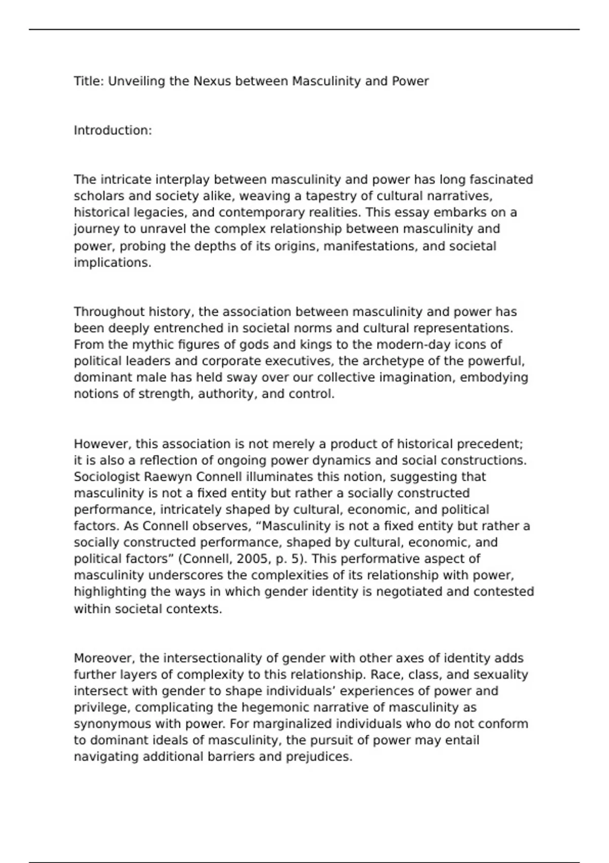 factors. As Connell observes, “Masculinity is not a fixed entity but rather a