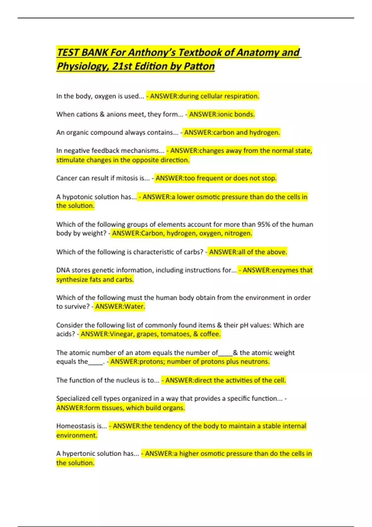 A hypertonic solution has... - ANSWER:a higher osmotic pressure than do the cells in