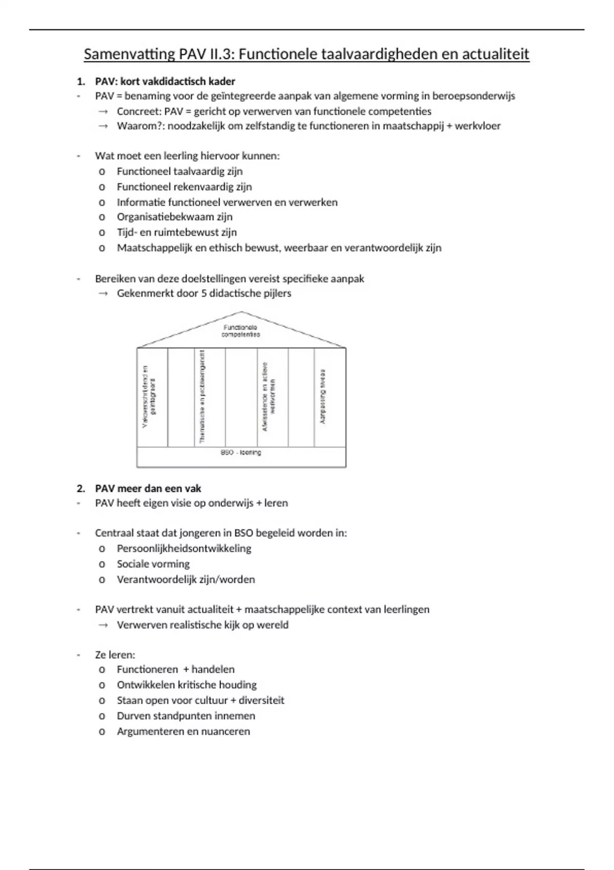 Samenvatting PAV vakinhoud II.3: Functionele taalvaardigheden en actualiteit