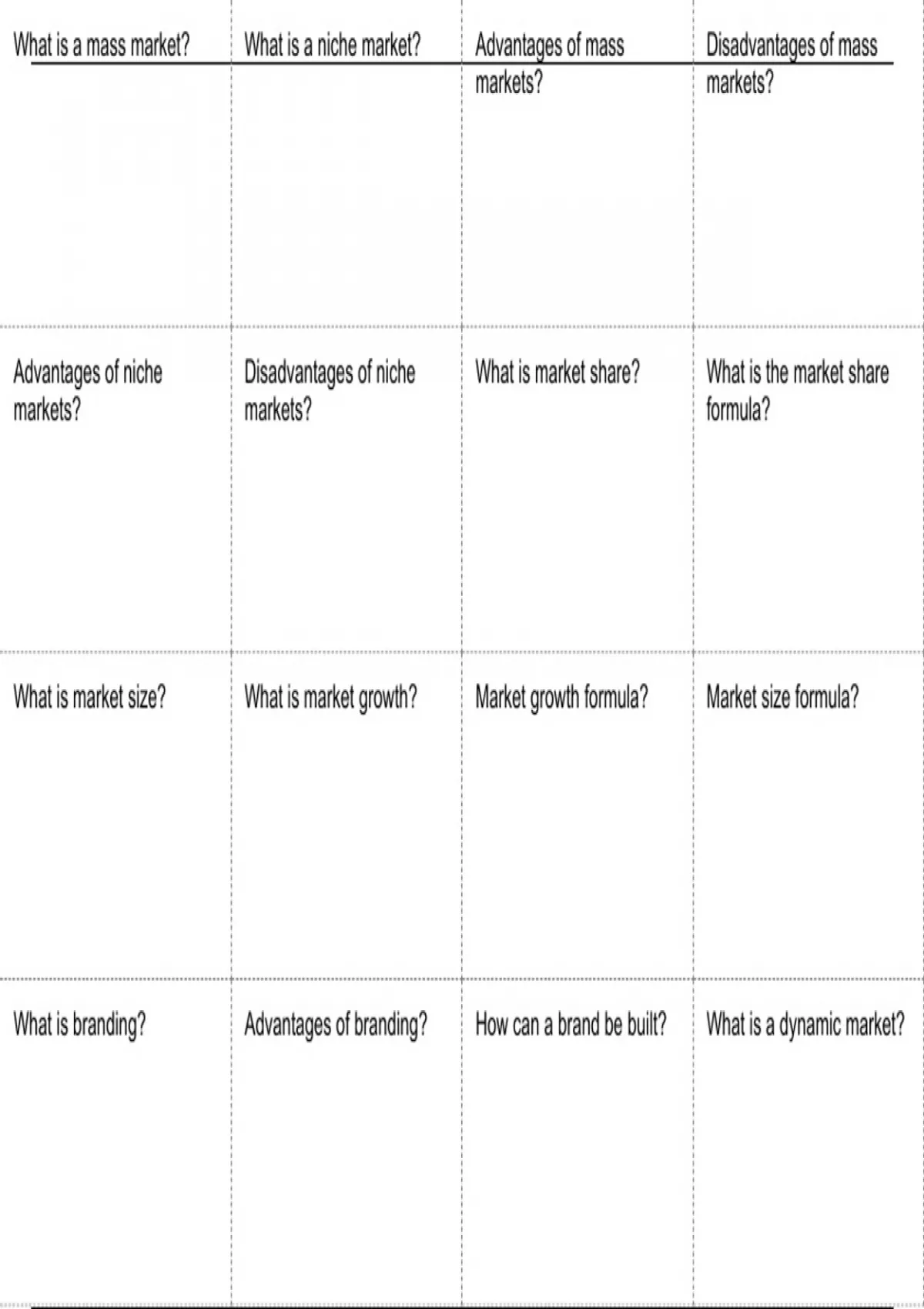 What is a mass market? What is a niche market? Advantages of mass Disadvantages of mass